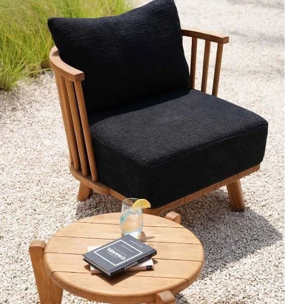 Oprócz wysokiej zawartości naturalnego oleju w drewnie, która sprawia, że seria ta nadaje się do użytku na zewnątrz, meble są również naturalnie szlifowane i zabezpieczane wodnym lakierem nawierzchniowym. Z biegiem czasu drewno nabierze pięknej, naturalnej szarawej patyny. Jeśli chcesz zachować ciepłą barwę drewna tekowego, zaimpreguj drewno olejem.