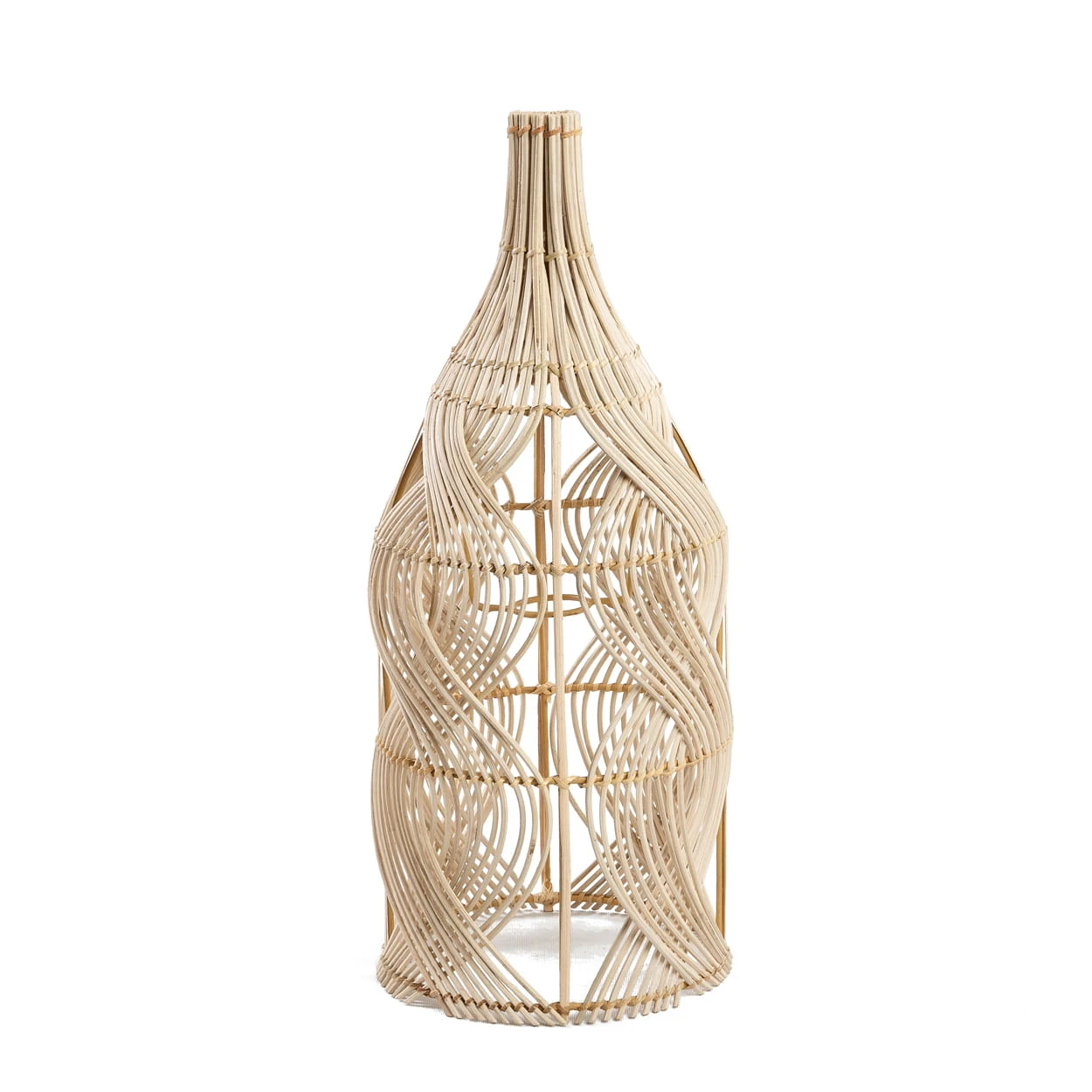 Garaffa to lampa wisząca – lub lampa podłogowa, w zależności od tego, jak chcesz jej używać – która robi wrażenie. Jego dzwonkowaty kształt jest w całości wykonany z rattanu i ma organiczny wygląd, jakiego potrzebuje każde wnętrze. Jest dostępny w dwóch rozmiarach. Nasz abażur Graffa to bestseller wśród projektów marki Bazar Bizar. Rattan na kloszu lampy jest pieczołowicie zapleciony, bez żadnych wystających elementów. Rattanowa lampa wisząca w stylu boho. Rattanowy abażur od Bazar Bizar w kształcie kropli łzy. Jest dostępny w trzech rozmiarach, a złożone wzory rattanu oświetlą twoją przestrzeń w bardzo atmosferyczny sposób.