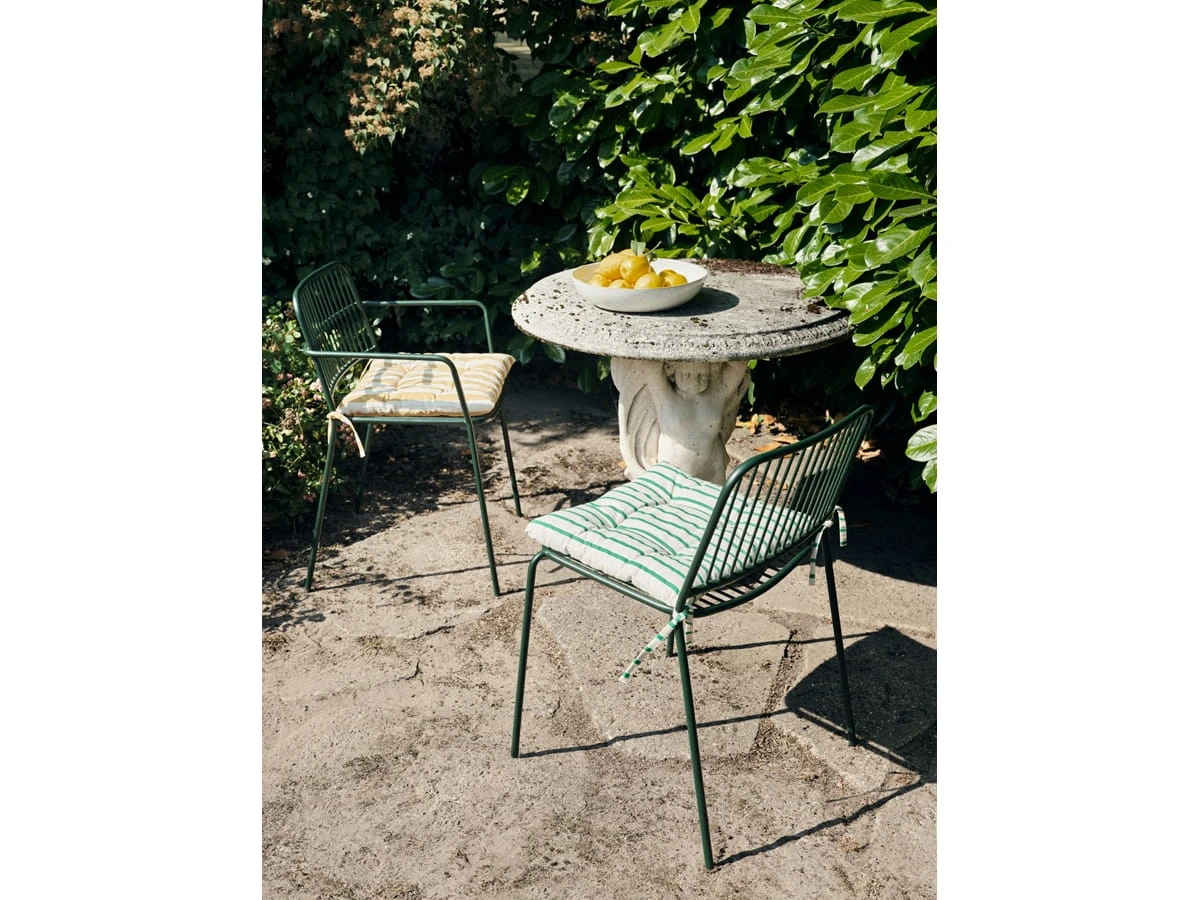 Broste Coprnhagen - zielone metalowe krzesło ogrodowe z podłokietnikami Eden