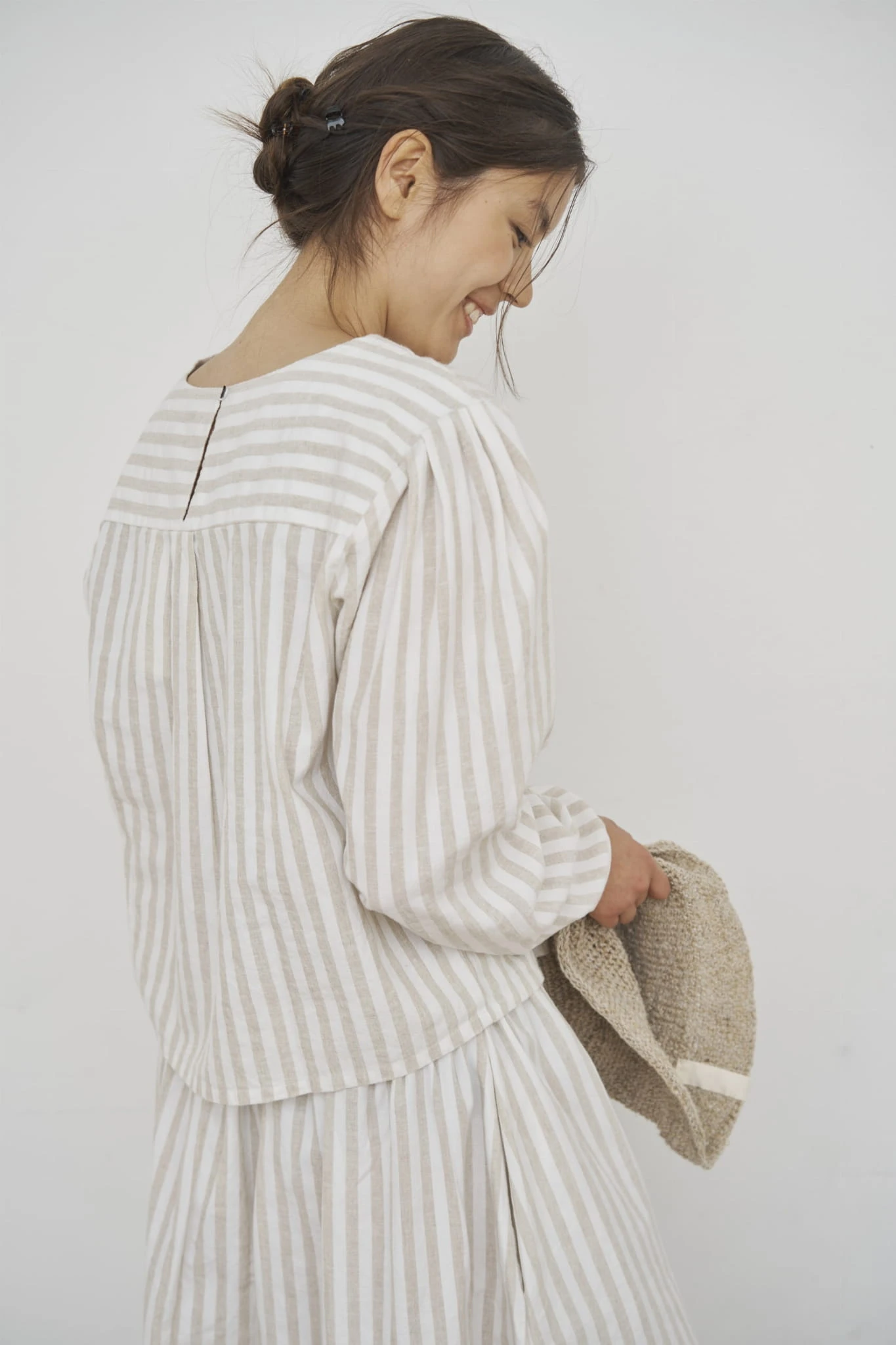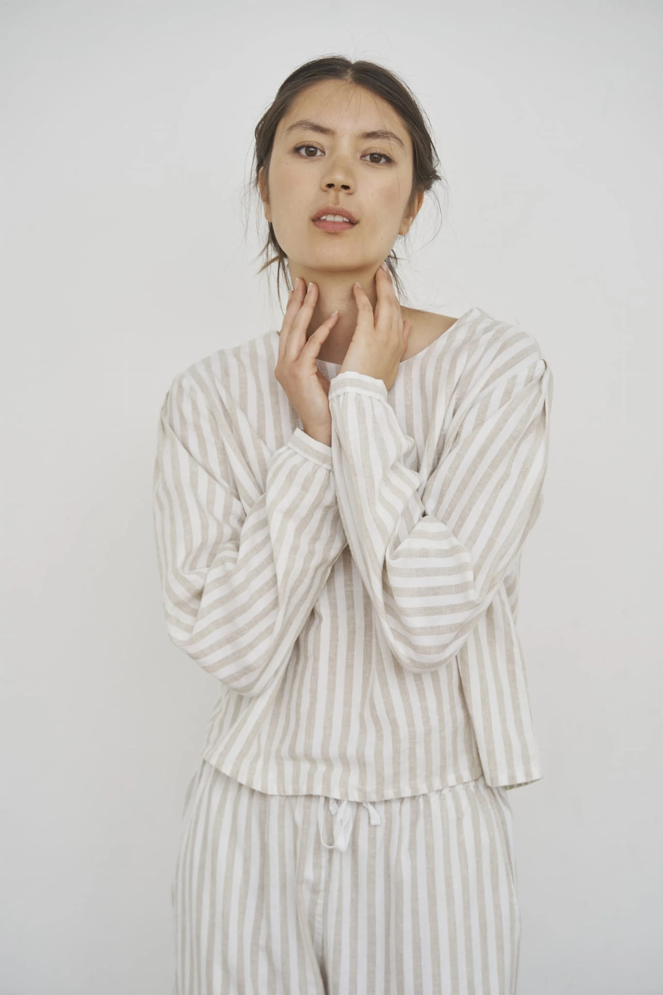 Bluzka Cecilie to rzeczywiście świetny wybór do każdej szafy! Jej połączenie bawełny organicznej i lnu gwarantuje komfort i przewiewność, co sprawia, że jest idealna na cieplejsze dni. Okrągły dekolt i subtelne detale, jak mały guzik z tyłu czy perłowe guziki na rękawach, dodają jej eleganckiego charakteru. Dzięki swojej uniwersalności łatwo ją zestawić zarówno z pasującym dołem z tej samej kolekcji, jak i z klasycznymi elementami, które mamy już w szafie. Na pewno będzie to jeden z tych ubrań, które można łączyć w różnych stylizacjach na co dzień! Jakie są Twoje ulubione elementy, z którymi chciałabyś ją połączyć?Świetnie komponowałaby się z prostymi, jasnymi spodniami lub spódnicą w stylu midi. Do tego lekkie sandały lub eleganckie baleriny i całość zyskałaby lekkość i elegancję. Można też zestawić ją z dżinsami, żeby dodać trochę swobodnego charakteru.