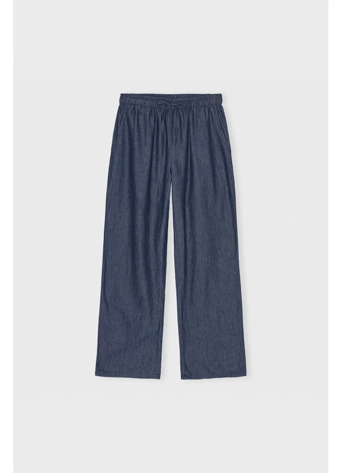 Stylowe spodnie Joy Denim to absolutny must-have na co dzień, łączące elegancję z komfortem. Wykonane z bawełnianego denimu z certyfikatem GOTS, są nie tylko modne, ale także przyjazne dla środowiska. Ich luźny krój zapewnia wygodę przez cały dzień, a elastyczna talia z wiązaniami dodaje funkcjonalności i dopasowuje się do sylwetki. Dodatkowo, boczne kieszenie sprawiają, że są niezwykle praktyczne.
