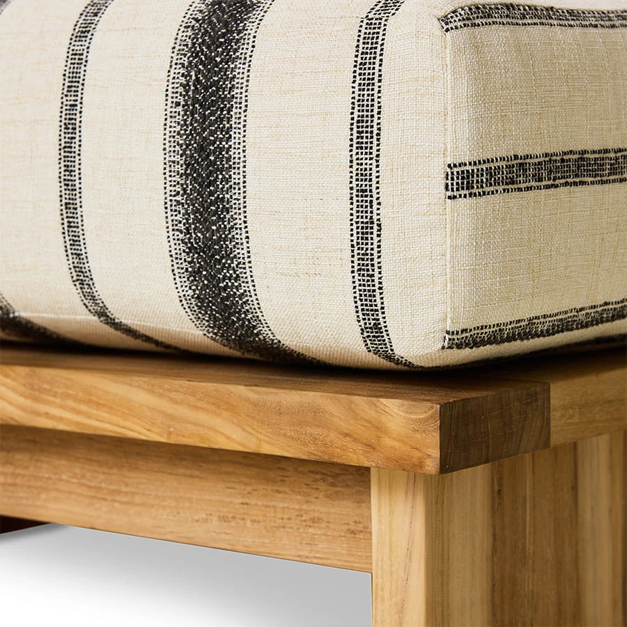 Wykonany z wysokiej jakości drewna tekowego, posiada czystą, minimalistyczną ramę, która doskonale współgra z pozostałymi elementami kolekcji. Wykończony tymi samymi, miękkimi i komfortowymi poduszkami, zapewnia spójność wizualną oraz wysoki komfort użytkowania. Dzięki odporności na warunki atmosferyczne i solidnej konstrukcji, hoker przeznaczony jest do długotrwałego użytkowania na zewnątrz.