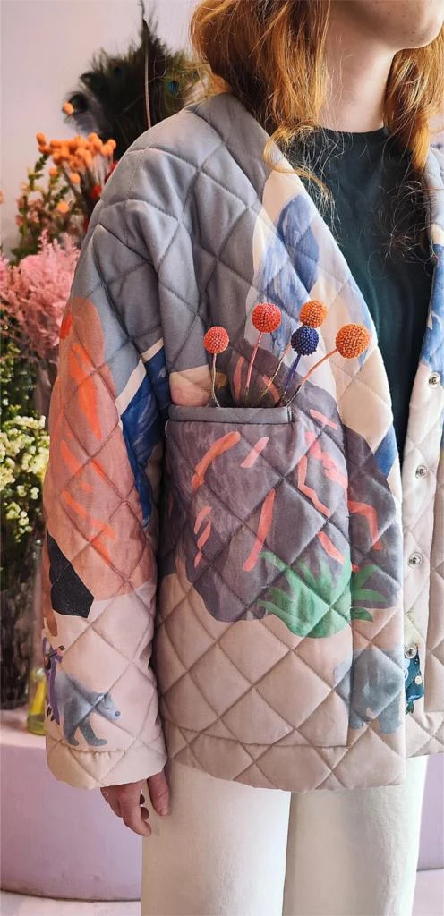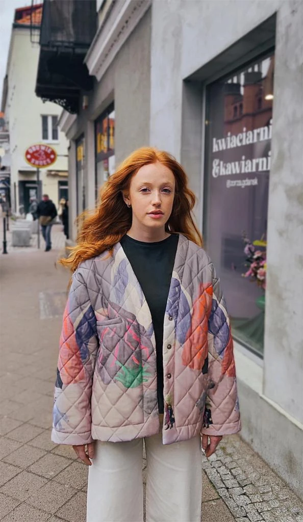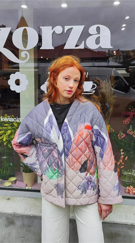 KURTKA HYGGE należy do limitowanej edycji kurtek powstało z umiłowania natury powstała 2023. Krój jest lekki i kobiecy , ponadczasowy pasujący do każdej stylizacji. Kurtka jest wygodna w noszeniu , lekka, wiosenna, dobrze układająca się .Satynowa bawełna jest delikatna i miękka w dotyku. Jak wiele z naszych ubrań posiada wiele zastosowań. Kurtka na kształt pudełkowy, jest pikowaną i zapinana na guziki-zatrzaski od jej wewnętrznej strony. Kurtka posiada kieszeń (poszetkę) na wysokości piersi. Autorski pattern Aleksandry Majzel