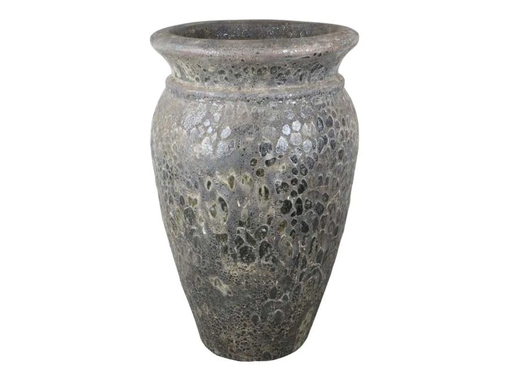 To idealne rozwiązanie dla osób pragnących przemienić swoją przestrzeń na świeżym powietrzu w tętniącą życiem oazę. Piękna okazała donica ogrodowa w szaro zielonym kolorze, które doskonale wpiszą się w każdy styl ogrodu. Donica wykonana jest z wysokiej jakości ceramiki nieszkliwione , matowe nie jednolite. Jej design inspirowany jest naturą, co sprawia, że idealnie komponują się z roślinami. Bez względu na to, czy wypełnisz je kwitnącymi kwiatami, czy bujną zielenią, z pewnością sprawią, że Twój teren na zewnątrz stanie się spokojnym i relaksującym miejscem.Donica posiadają dziurkę w dnie i są mrozoodporne. Sprawdzi się zarówno w salonie do wysokich kwiatów doniczkowych i pięknie będzie wyglądała z drzewem oliwnym lub laurowcem na ogrodzie. Dzięki niejTwój ogród zyska niepowtarzalny charakter i stanie się miejscem, gdzie chętnie spędzisz każdą wolną chwilę