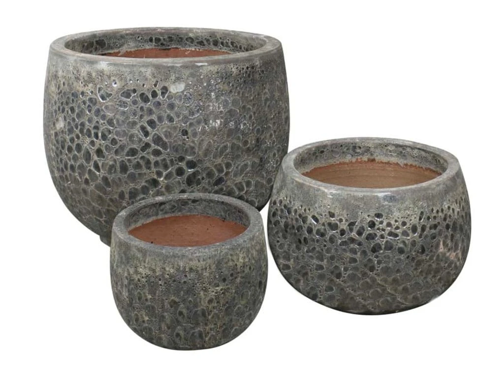 To idealne rozwiązanie dla osób pragnących przemienić swoją przestrzeń na świeżym powietrzu w tętniącą życiem oazę. W skład zestawu wchodzą trzy donice w szaro zielonym kolorze, które doskonale wpiszą się w każdy styl ogrodu. Donice wykonane są z wysokiej jakości ceramiki nieszkliwione , matowe nie jednolite. Ich design inspirowany jest naturą, co sprawia, że idealnie komponują się z roślinami. Bez względu na to, czy wypełnisz je kwitnącymi kwiatami, czy bujną zielenią, z pewnością sprawią, że Twój teren na zewnątrz stanie się spokojnym i relaksującym miejscem.Donice posiadają dziurkę w dnie i są mrozoodporne. Sprawdzą się zarówno w salonie do kwiatów doniczkowych i pięknie będą wyglądała z drzewem oliwnym lub laurowcem na ogrodzie. Dzięki nim Twój ogród zyska niepowtarzalny charakter i stanie się miejscem, gdzie chętnie spędzisz każdą wolną chwilę