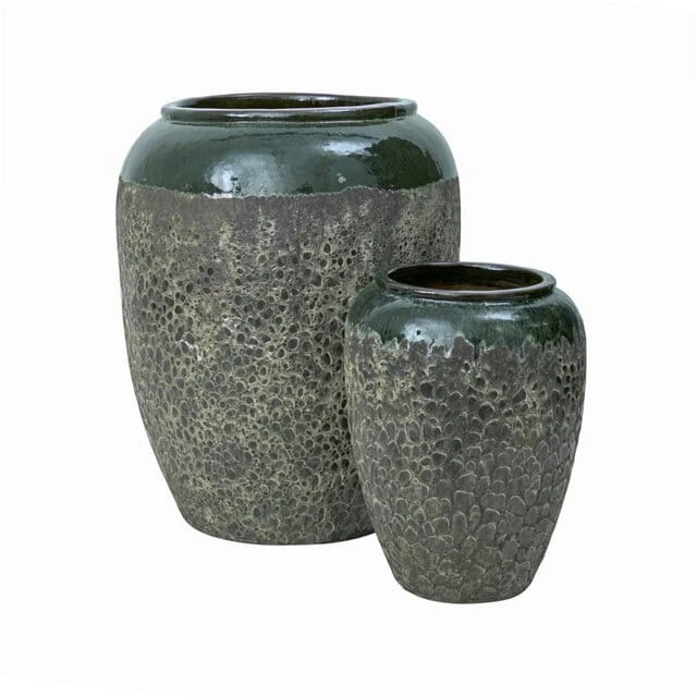 Idealne rozwiązanie dla osób pragnących przemienić swoją przestrzeń na świeżym powietrzu w tętniącą życiem oazę. W skład zestawu wchodzą dwie donice w szaro zielonym kolorze, które doskonale wpiszą się w każdy styl ogrodu. Donice wykonane są z wysokiej jakości ceramiki szkliwione , matowe nie jednolite. Ich design inspirowany jest naturą, co sprawia, że idealnie komponują się z roślinami. Bez względu na to, czy wypełnisz je kwitnącymi kwiatami, czy bujną zielenią, z pewnością sprawią, że Twój teren na zewnątrz stanie się spokojnym i relaksującym miejscem.Donice posiadają dziurkę w dnie i są mrozoodporne. Sprawdzą się zarówno w salonie do kwiatów doniczkowych i pięknie będą wyglądała z drzewem oliwnym lub laurowcem na ogrodzie. Dzięki nim Twój ogród zyska niepowtarzalny charakter i stanie się miejscem, gdzie chętnie spędzisz każdą wolną chwilę