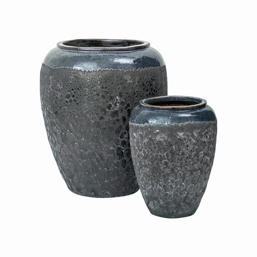 Idealne rozwiązanie dla osób pragnących przemienić swoją przestrzeń na świeżym powietrzu w tętniącą życiem oazę. W skład zestawu wchodzą dwie donice w szaro niebieskim kolorze, które doskonale wpiszą się w każdy styl ogrodu. Donice wykonane są z wysokiej jakości ceramiki szkliwione , matowe nie jednolite. Ich design inspirowany jest naturą, co sprawia, że idealnie komponują się z roślinami. Bez względu na to, czy wypełnisz je kwitnącymi kwiatami, czy bujną zielenią, z pewnością sprawią, że Twój teren na zewnątrz stanie się spokojnym i relaksującym miejscem.Donice posiadają dziurkę w dnie i są mrozoodporne. Sprawdzą się zarówno w salonie do kwiatów doniczkowych i pięknie będą wyglądała z drzewem oliwnym lub laurowcem na ogrodzie. Dzięki nim Twój ogród zyska niepowtarzalny charakter i stanie się miejscem, gdzie chętnie spędzisz każdą wolną chwilę