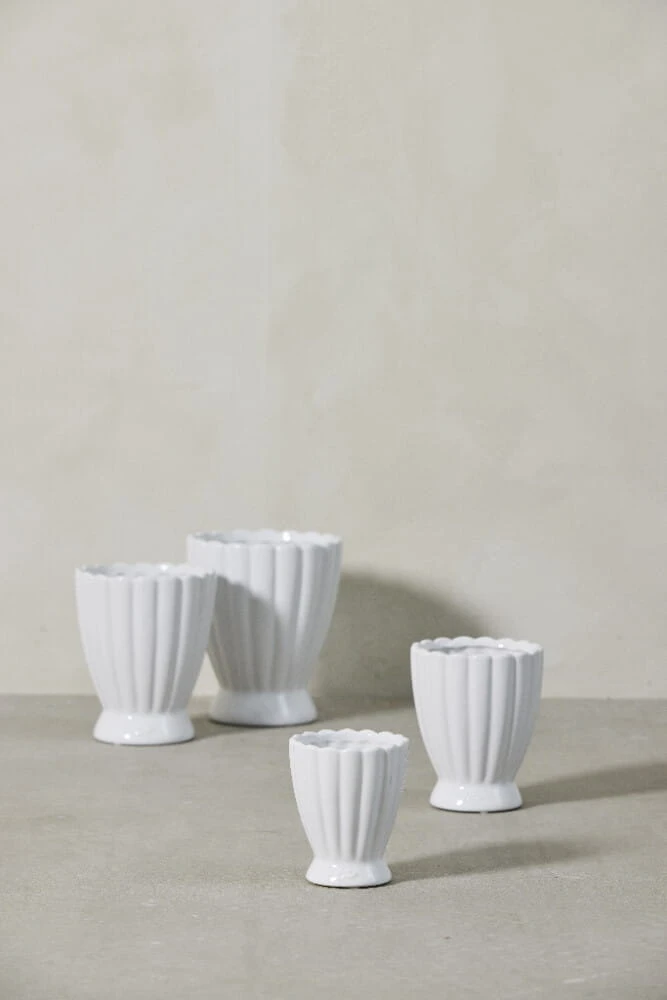 Biała doniczka ceramiczna 10x12 Milenne duńskiej marki Lene Bjerre to skandynawska doniczka, idealna do tego stylu. Posadź w niej jaki piękny nowy kwiat i niech rozwija się i dekoruje dom. Jest to doniczka ceramiczna ze szkliwieniem. Świetnie prezentują się w niej zarówno typowe kwiaty, jak i rośliny zielone. Idealna doniczka do wnętrza sypialni czy salonu w stylu skandynawskim. Dzięki specjalnemu i stylowemu wzornictwu w pionowe prążki, doniczka jest uzupełnieniem każdego wnętrza.