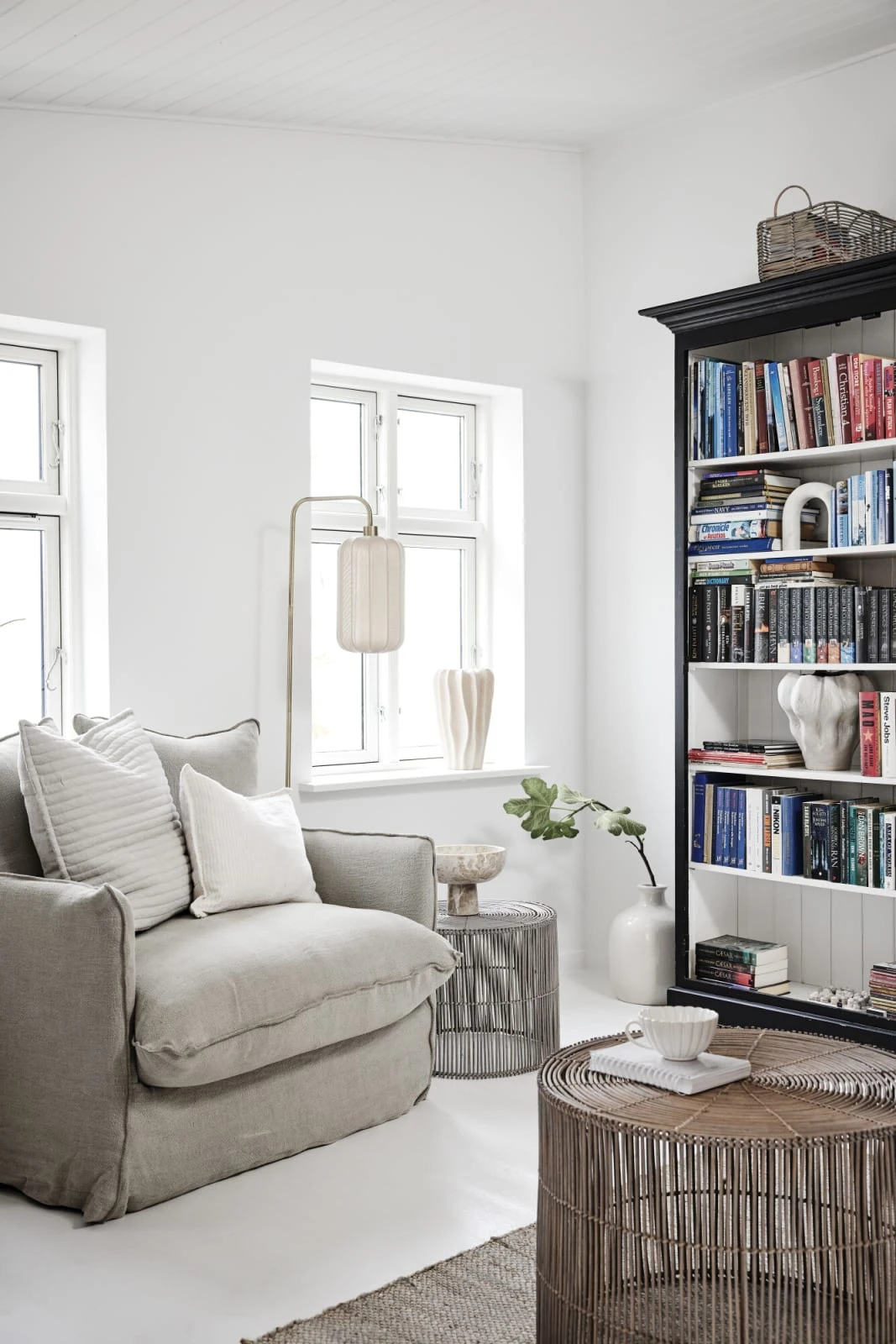 Lene Bjerre- beżowa lampa podłogowa z abażurem Sashie