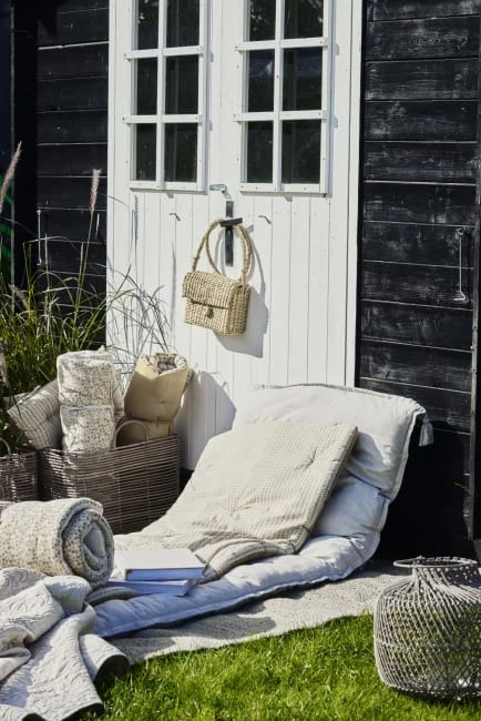 Bawełniana poduszka na ławkę Lene Bjerre zachwyci fanów naturalności, prostoty i stonowanych kolorów.