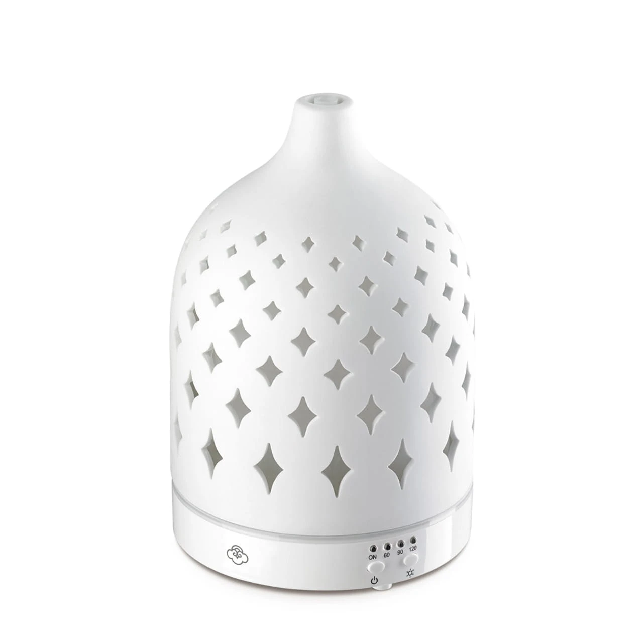 Szczegółowa ceramiczna pokrywa dyfuzora "Stars" doda wyrafinowanego akcentu każdemu pomieszczeniu. Nie czekaj, zadbaj o swoje samopoczucie i atmosferę w domu już dziś. Wybierz nasz dyfuzor aromaterapeutyczny "Stars" i ciesz się ulubionym zapachem każdego dnia