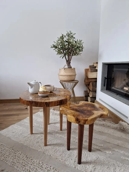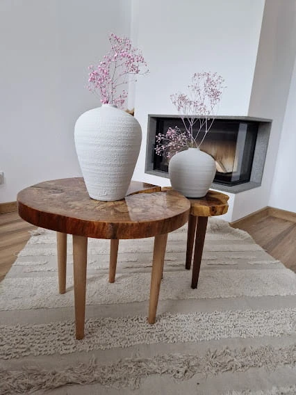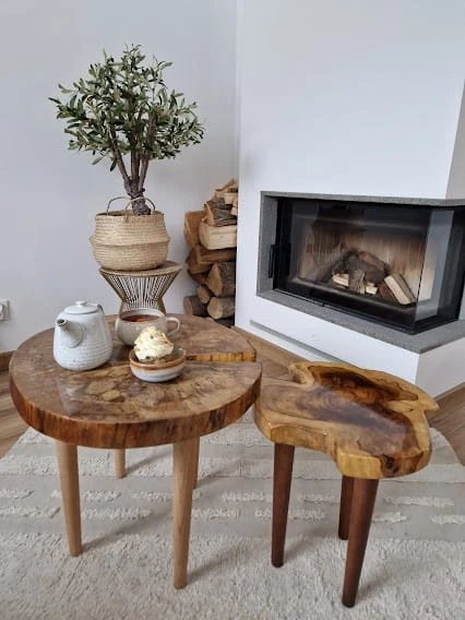 Jego unikatowy kształt przyciąga wzrok i dodaje charakteru każdemu pomieszczeniu. Produkt wykonany z miłości do natury, co widać w każdym centymetrze drewnianej powierzchni. Idealnie wpasuje się w naturalny styl, ale także doskonale komponuje się z wnętrzami w stylu skandynawskim. To nie tylko mebel, ale także element dekoracyjny, który wprowadzi do Twojego domu ciepło i przytulność