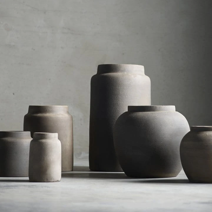 Gliniany wazon Tine K Home może wystąpić w aranżacji w stylu skandynawskim lub loftowym. Z jednej strony mamy naturalny materiał - glinę, z drugiej surowy, chłodny design. Bardzo dobrze komponuje się z elementami betonu architektonicznego lub kamieni. Zastosowana glina nie jest jednolita, a co za tym idzie, z każdej strony wazon wygląda odrobinę inaczej, oraz nie ma dwóch identycznych, gdyż jest to ręczna robota.
