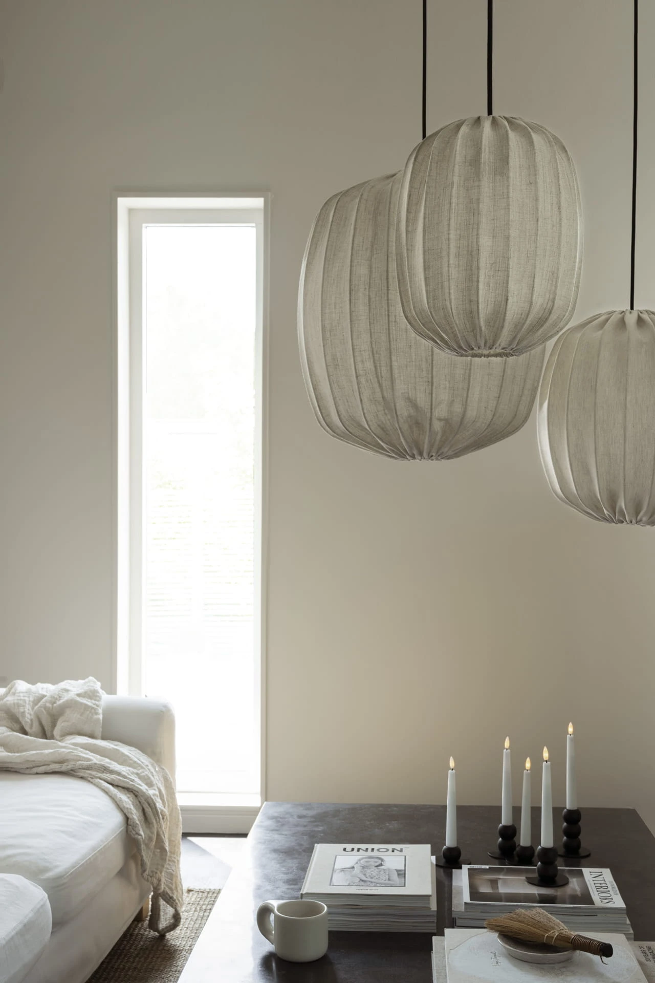 Niepowtarzalny i jedyny w swoim rodzaju klosz Prisma 25 Linen Natural, który łączy w sobie elegancję, funkcjonalność i ponadczasowy design. Ten wyjątkowy klosz to idealne rozwiązanie dla ceniących sobie styl skandynawski i nowoczesne rozwiązania. charakteryzuje się nowoczesnym zamiłowaniem do prostoty w aranżacji wnętrz. Klosz prezentuje się w minimalistycznym stylu, który wydaje się elegancko unosić w powietrzu, tworząc cudowną lekkość w oświetleniu. Klosz Prisma składa się z lekkiej, ale wytrzymałej stalowej konstrukcji, która została pokryta jasnym bawełnianym pokrowcem. Dzięki temu jest nie tylko estetyczny, ale również trwały i łatwy w utrzymaniu .Klosz ma lekko wydłużony kształt, który dodaje mu elegancji. Emituje przyjemne, stonowane światło, które wydobywa się z jasnej tkaniny, tworząc rozproszoną poświatę. Dzięki temu klosz Prisma idealnie wpasuje się w każde wnętrze, dodając mu ciepła i przytulności. ,Zestaw kabli sufitowych nie jest dołączony — wybierz kolor według własnego uznania, kierując się swoim gustem.