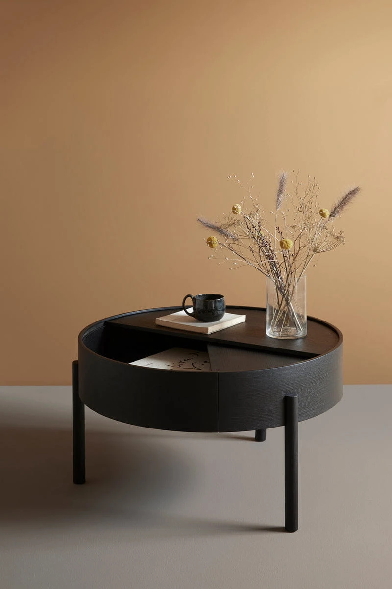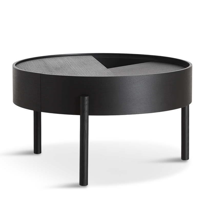 Stolik kawowy ARC nazwę czerpie z matematycznych funkcji opisujących właściwości okręgu. Projektanci tych pomysłowych stolików kawowych postawili na interakcję między przedmiotem a użytkownikiem oraz na dbałość o każdy detal. Stolik kawowy jest zaprojektowany tak, aby użytkownik mógł z łatwością obracać górny blat jednym palcem. Można go otworzyć, aby wyeksponować ulubione przedmioty, lub zamknąć, aby ukryć nieporządek. Wewnętrzna przestrzeń do przechowywania jest pokryta gładkim nanolaminatem, który doskonale komponuje się z drewnem jesionowym. Trójnoga konstrukcja dodaje lekkości i geometrycznego uroku całemu projektowi. Stolik ARC to nie tylko praktyczny mebel, ale także stylowy dodatek do każdego wnętrza. Ten wyjątkowy mebel, który doskonale wpisuje się w skandynawski styl. Jego prosta, ale elegancka forma sprawia, że pasuje do minimalistycznych wnętrz, dodając im uroku i wyrafinowania. Wykonany z najwyższą precyzją i dbałością o detale, stolik ARC jest nie tylko praktyczny, ale także estetyczny. Jego blat jest idealny do serwowania kawy czy herbaty, a także jako miejsce na ulubione książki czy dekoracje. Solidna konstrukcja gwarantuje trwałość i stabilność, a naturalne wykończenie podkreśla piękno drewna. Stolik ARC to doskonały wybór dla osób ceniących sobie prostotę i funkcjonalność połączoną z nowoczesnym designem