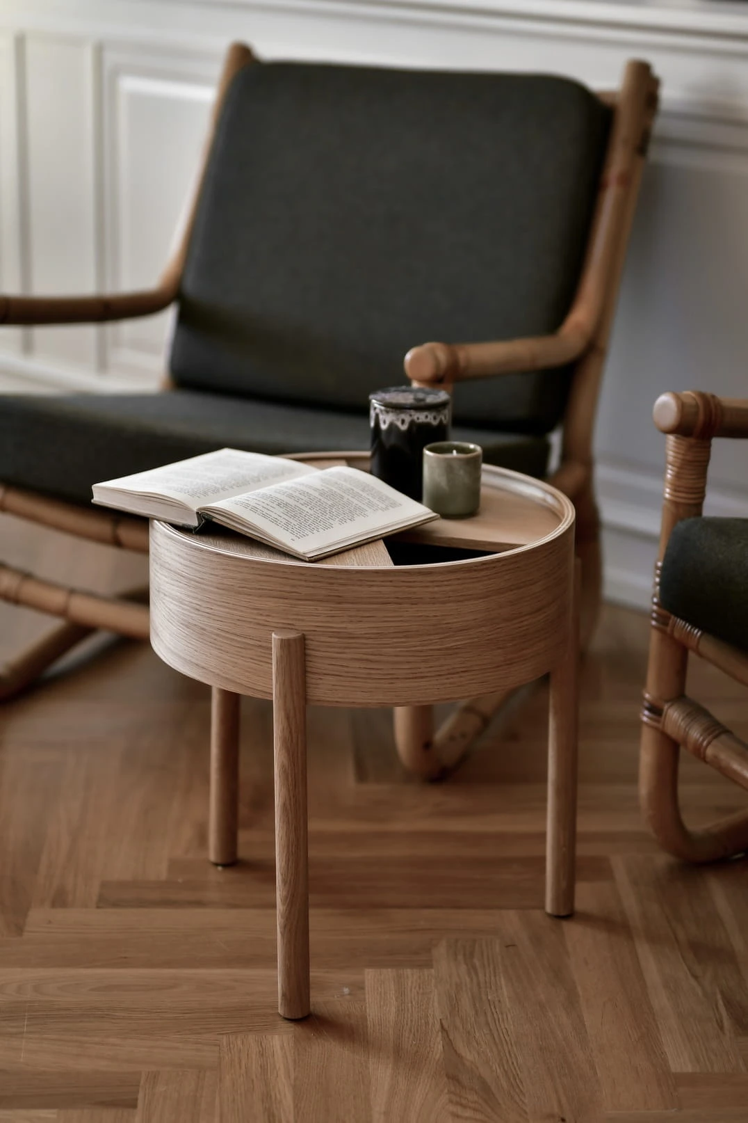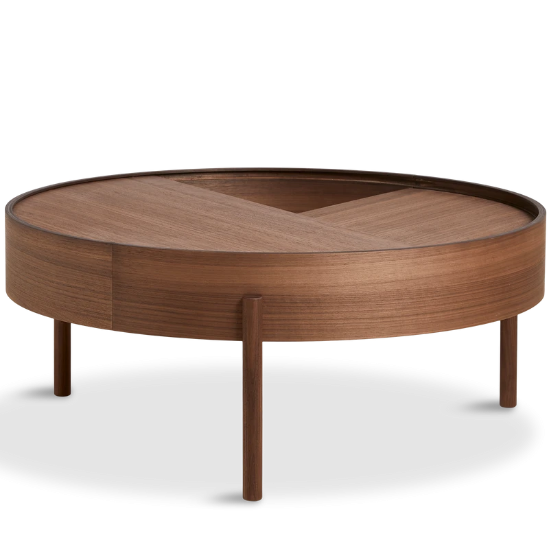 Stolik kawowy ARC nazwę czerpie z matematycznych funkcji opisujących właściwości okręgu. Projektanci tych pomysłowych stolików kawowych postawili na interakcję między przedmiotem a użytkownikiem oraz na dbałość o każdy detal. Stolik kawowy jest zaprojektowany tak, aby użytkownik mógł z łatwością obracać górny blat jednym palcem. Można go otworzyć, aby wyeksponować ulubione przedmioty, lub zamknąć, aby ukryć nieporządek. Wewnętrzna przestrzeń do przechowywania jest pokryta gładkim nanolaminatem, który doskonale komponuje się z drewnem jesionowym. Trójnoga konstrukcja dodaje lekkości i geometrycznego uroku całemu projektowi. Stolik ARC to nie tylko praktyczny mebel, ale także stylowy dodatek do każdego wnętrza. Ten wyjątkowy mebel, który doskonale wpisuje się w skandynawski styl. Jego prosta, ale elegancka forma sprawia, że pasuje do minimalistycznych wnętrz, dodając im uroku i wyrafinowania. Wykonany z najwyższą precyzją i dbałością o detale, stolik ARC jest nie tylko praktyczny, ale także estetyczny. Jego blat jest idealny do serwowania kawy czy herbaty, a także jako miejsce na ulubione książki czy dekoracje. Solidna konstrukcja gwarantuje trwałość i stabilność, a naturalne wykończenie podkreśla piękno drewna. Stolik ARC to doskonały wybór dla osób ceniących sobie prostotę i funkcjonalność połączoną z nowoczesnym designem