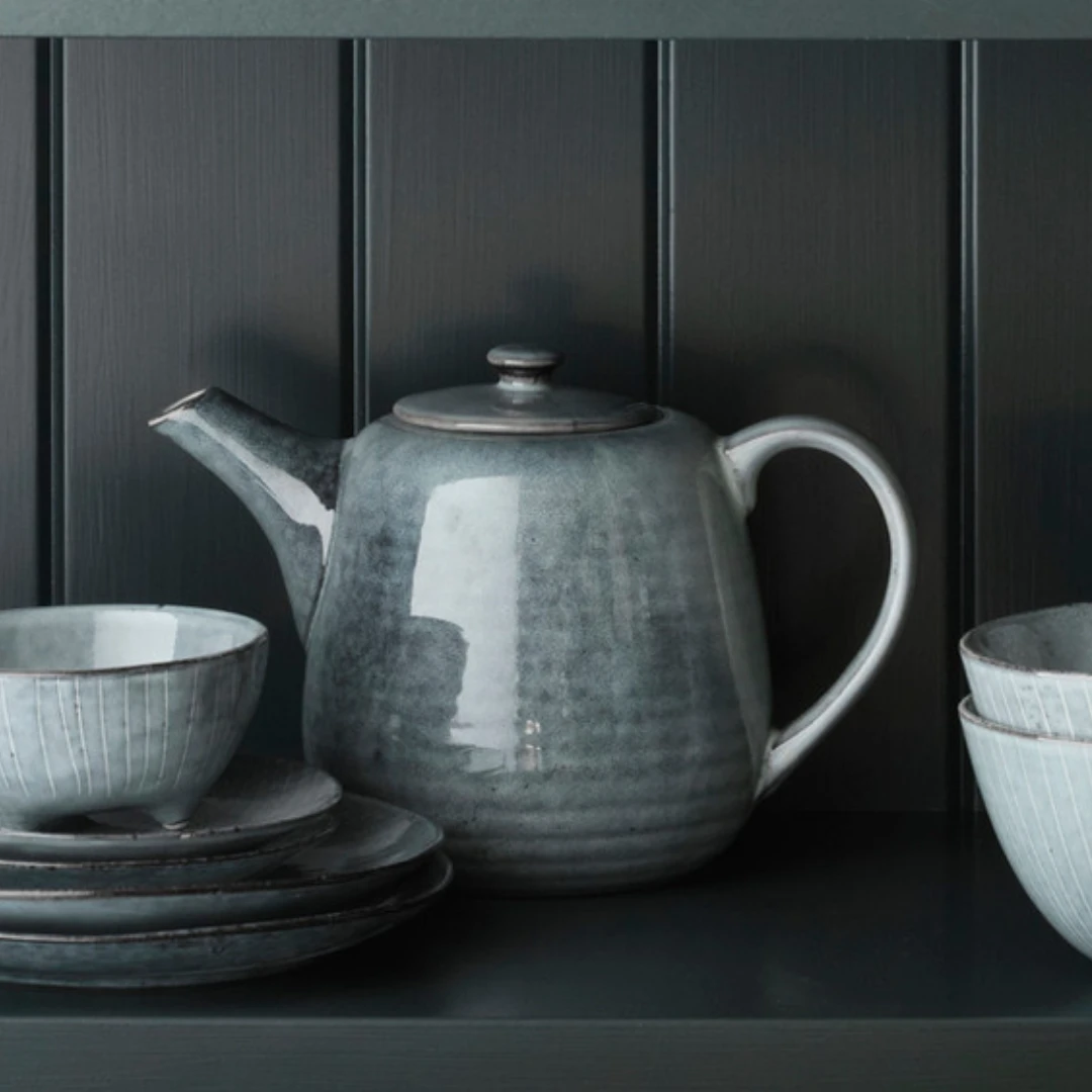 Dzbanek do herbaty Nordic Sea 1300ml Broste Copenhagen to rodzinny imbryk, w którym możesz podać pyszny napar domownikom lub gościom. Jest to pojemność, która pozwala uzyskać nawet 4-5 porcji. Wystarczy do wewnątrz włożyć liście herbaty, zioła lub suszone kwiaty i przyprawy, zalać gorącą wodą i już po kilku minutach możesz cieszyć się ciepłym napojem. Niebieski dzbanek jest bardzo elegancko wykonany. Skandynawska ceramika jest solidna i ręcznie robiona. Nie ma więc dwóch takich samych dzbanków. Dobierz do niego filiżanki i kubki.