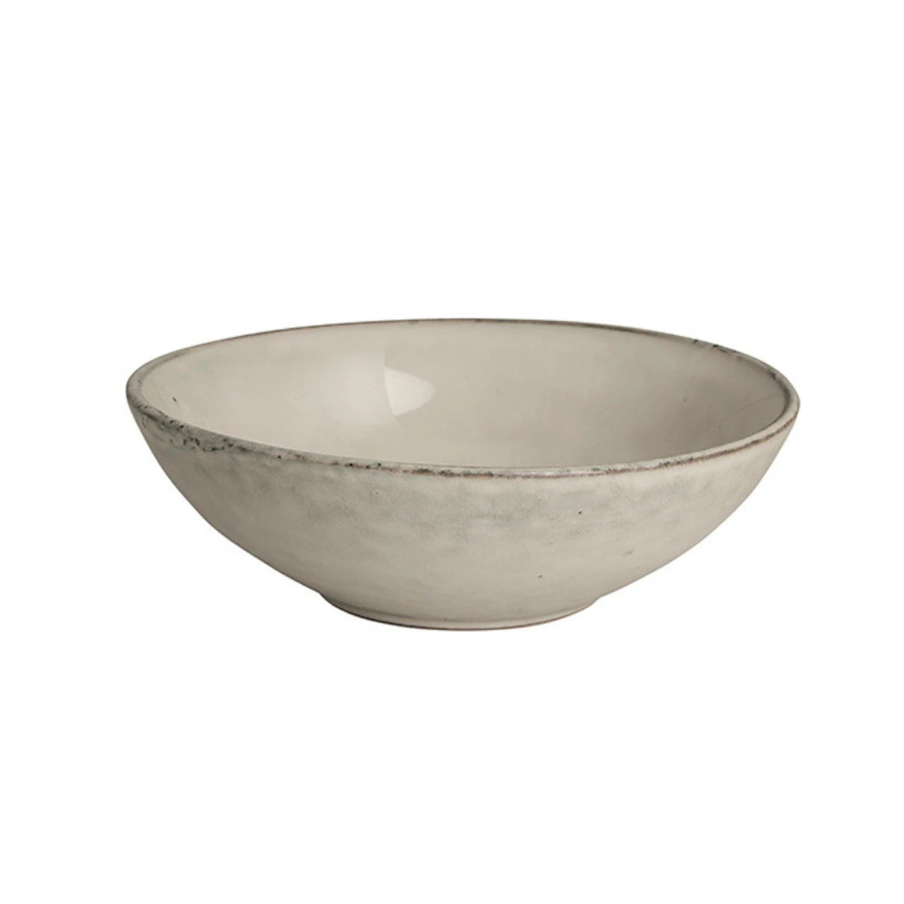 Miska na zupę Nordic Sand 17cm pozwoli w piękny sposób podać pierwsze danie na stół, a także wygodnie je spożyć. To także rewelacyjna miska na makaron czy curry! Bardzo fajna w użytkowaniu. Jest to ceramika, której design bazuje na skojarzeniach z piaskiem, plażą, morskim brzegiem. Kolor jest... piaskowy. Przewodzi tutaj szarość, ale nakrapiany jest malutkimi kropeczkami z krzemionki. Z daleka są one niewidoczne, ale z bliska łatwo je dostrzec. Dzięki losowemu ich rozsianiu, każda miska ma swoje unikalne cechy. Ceramika jest szkliwiona po obu stronach, więc możesz wkładać ją do mikrofalówki i zmywarki. Co ciekawe, wspaniale komponuje się nie tylko z pozostałymi elementami tej serii, ale też z niebieską czy czarną ceramiką z pokrewnych linii. Miski na zupę sprzedajemy pojedynczo, więc możesz kupić ją tylko dla siebie lub więcej, a nawet cały set. Jeżeli potrzebujesz ich więcej, niż mamy aktualnie w systemie, prosimy zadzwoń, a uzupełnimy magazyn.