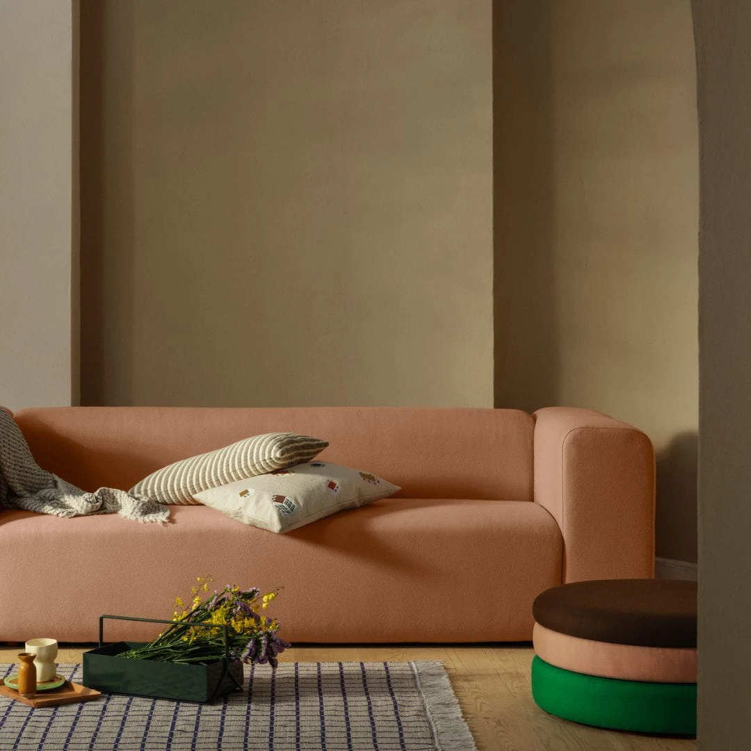 Trójkolorowy puf Pond 68x30 szmaragd-róża-kawa duńskiej marki Broste Copenhagen to bardzo stylowy mebel do sypialni, garderoby, przedpokoju lub pokoju dziecka. Idealny także do poczekalni w salonie piękności lub w sklepie z odzieżą. Trzy moduły w różnych kolorach odzwierciedlają to, co współczesne kobiety lubią najbardziej - zielone świecidełka, kwiaty i relaks z kawką w dłoniach. Puf świetnie kontrastuje w jasnych wnętrzach, ale możesz dopasować go do pokoju, w którym jest ściana lub są inne elementy w kolorze jednego z modułów. Świetniej jakości tkanina, gładka i przyjemna w dotyku, nie pozostawia wątpliwości co do jakości. Części pufu możesz rozdzielać, układać na podłodze, jako osobne siedziska lub po prostu dopasować wysokość pufu do potrzeb Twoich lub dziecka.