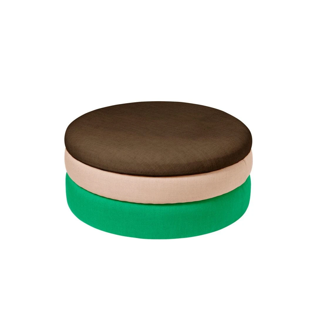 Broste Copenhagen- trójkolorowy puf Pond 68x30 szmaragd-róża-kawa