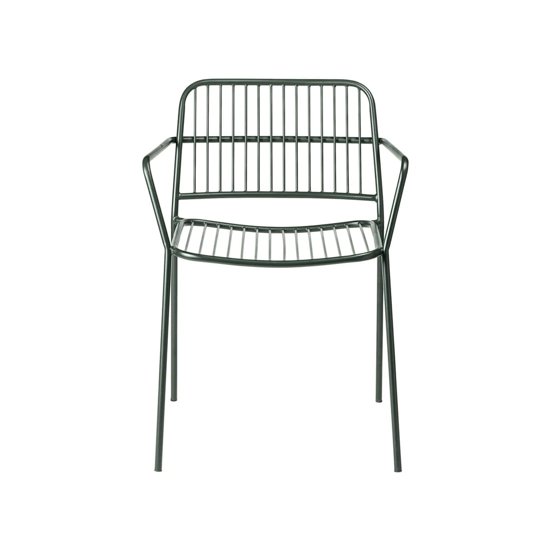 Broste Coprnhagen - zielone metalowe krzesło ogrodowe z podłokietnikami Eden