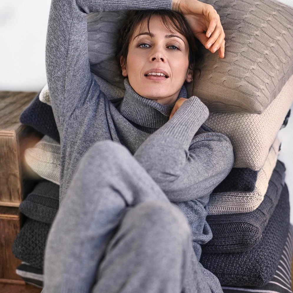 Spodnie Annemo idealnie pasują do swetra z tej samej serii ,razem idealnie się komponują i tworząc przytulny strój na co dzień.Wskocz do swojego miękkiego zestawu ANNEMO i poczuj, jak otula Cię czysty kaszmir. Idealny zestaw na jesienne dni i wieczory .