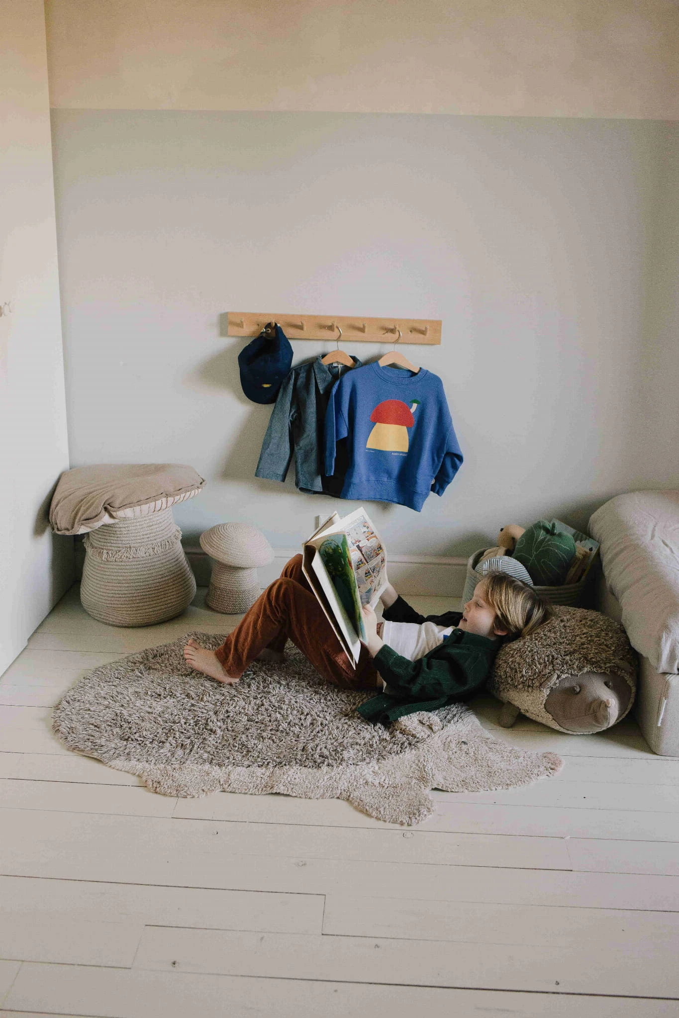 Zaproś leśny urok do pokoju dziecka z miękkim dywanem Jeż od Lorena Canals. Ten ekologiczny, bawełniany dywan dziecięcy w beżowych barwach tworzy przytulny i bezpieczny kącik do zabawy.