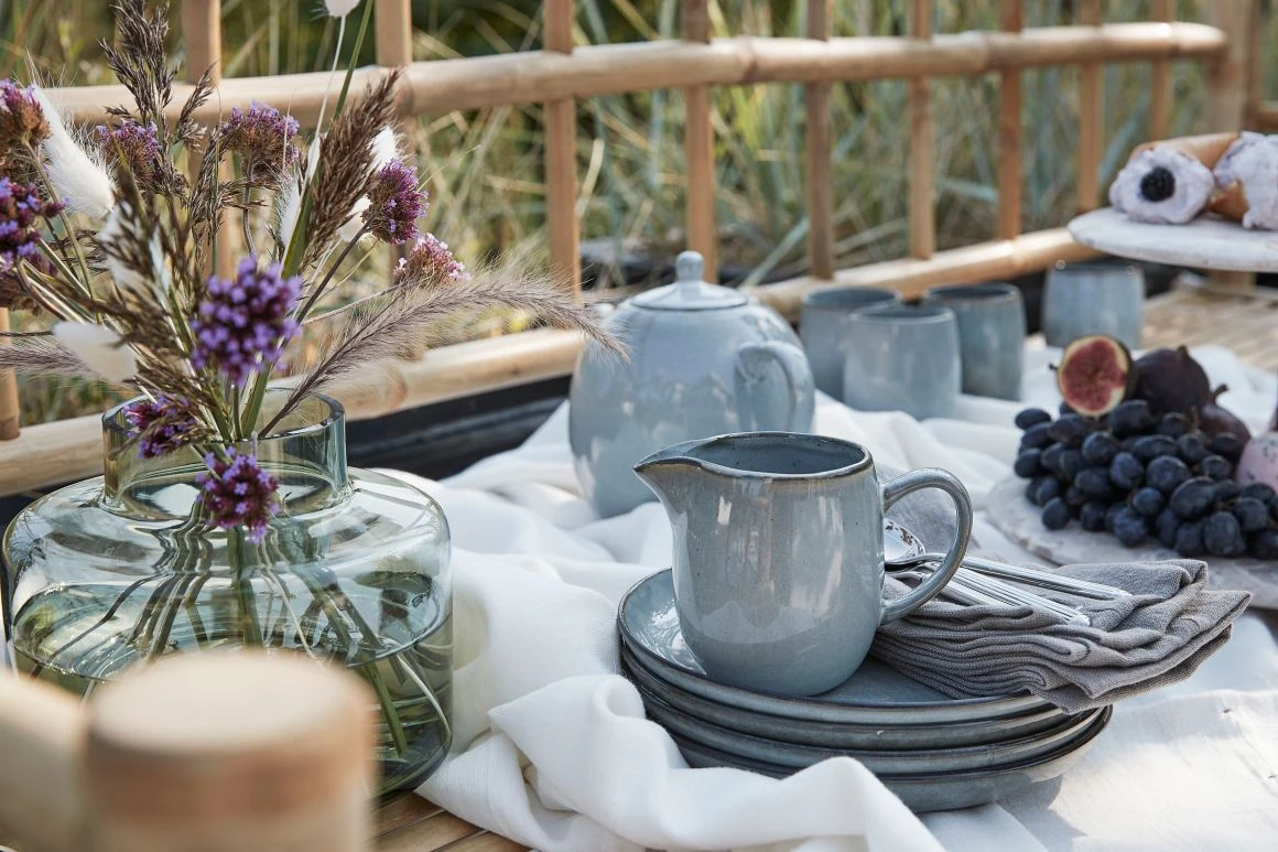 Piękna szara ceramika od Lene Bjerre. Dzięki spokojnym kolorowym kolorom i delikatnym organicznym kształtom dzbanek gwarantuje przyjemną atmosferę przy stole.