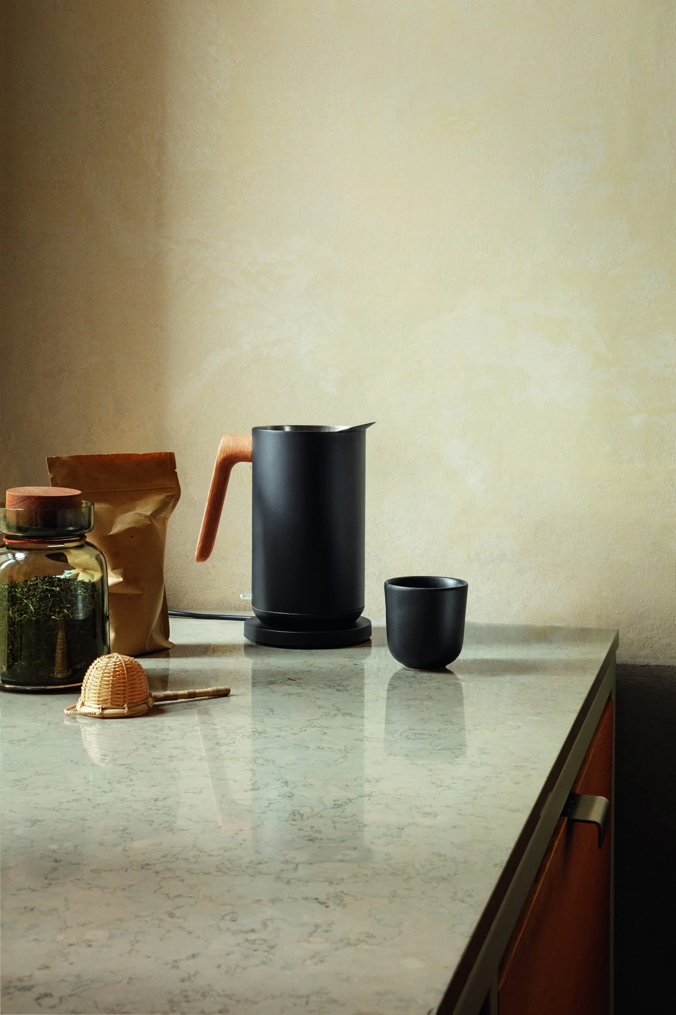 Seria Nordic Kitchen obejmuje trzy dzbanki ze szczotkowanej stali nierdzewnej – kafeterię, czajnik elektryczny i dzbanek próżniowy, dzięki czemu za każdym razem możesz zaparzyć świeżo parzoną kawę i stylowo podać herbatę. Zainspirowany nordyckimi tradycjami projektowymi, idiom jest minimalistyczny i stylowy oraz pięknie pasuje do nordyckiej kuchni. Dzbanki zostały zaprojektowane tak, aby z pewnością można je było zostawić na blacie w kuchni, a nawet na stole w jadalni.