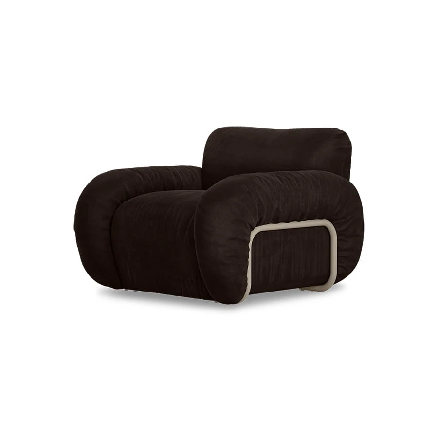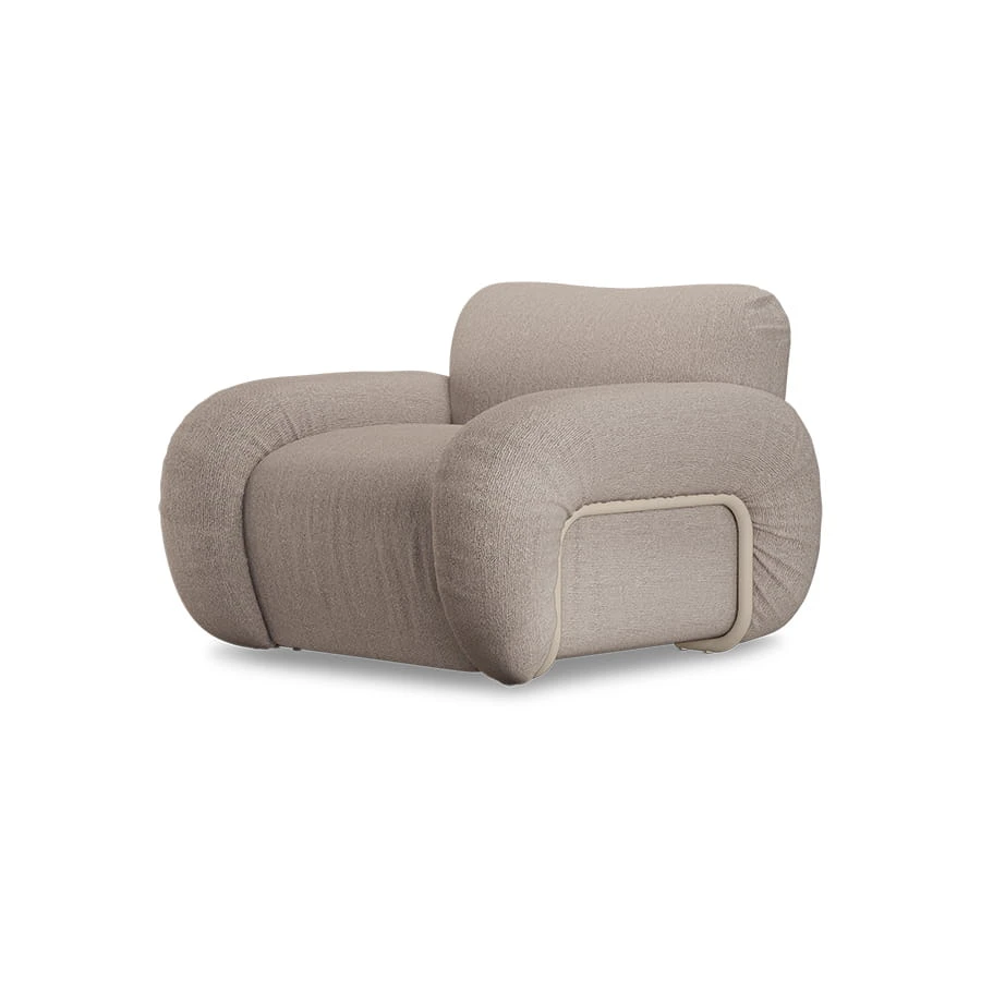 HKliving - Fotel Arc to minimalistyczny i stylowy mebel o piaskowej ramie. Wygodne siedzisko, miękkie oparcie i trwałe materiały zapewniają komfort. Tapicerka Wise Blossom dodaje przytulności, a metalowe nogi gwarantują stabilność. Idealny do nowoczesnych wnętrz.