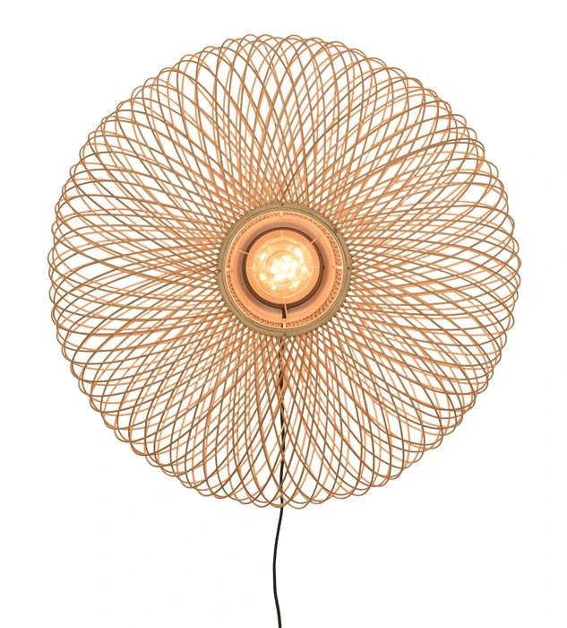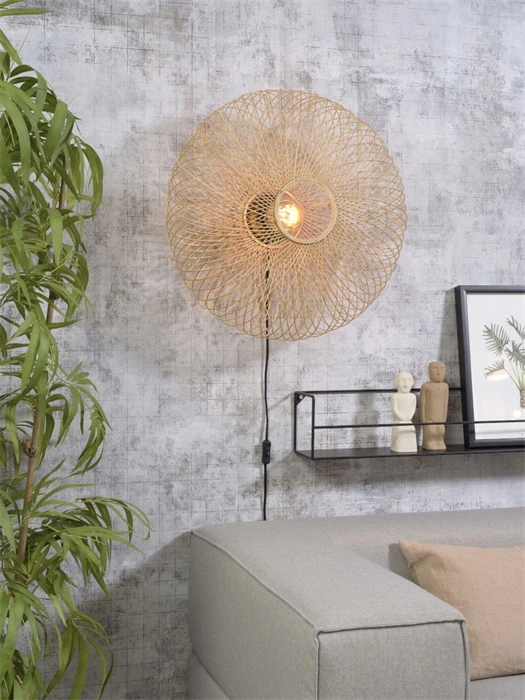 Przepiękna lampa ścienna od producenta GOOD&MOJO .Wykonana ręcznie z naturalnego bambusa w ciekawym eliptycznym kształcie. Lampa z pewnością jest wyjątkową dekoracją, wszędzie gdzie się znajdzie przyciąga uwagę.Przepięknie przenikające światło. wyróżnia lampę wśród innych .Dzięki ażurowej formie klosz wprowadza do wnętrza wizualną lekkość i daje przyjemny efekt gry światła i cienia.Widoczna żarówka przebijająca się zza delikatnych splotów bambusa przyjemnie rozświetli pomieszczenie.