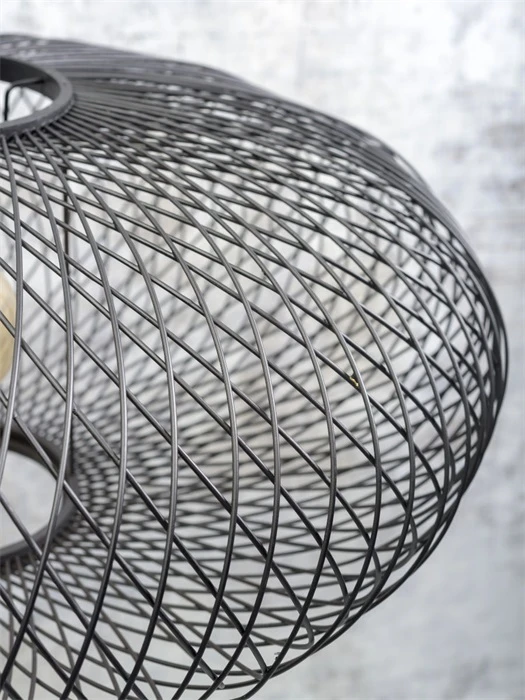 Wszystkie nowości Good & Mojo mają klosze z uprawianego w sposób zrównoważony bambusa. To nieprzypadkowy wybór. Głównie dlatego, że plecionka z pasków czy włókien tej rośliny wprowadza do aranżacji walor naturalności i pięknie filtruje światło, tworząc na ścianach i suficie istny spektakl teatru cieni, co wygląda bardzo dekoracyjnie i w znacznym stopniu ożywia wnętrze. Ale także z tego powodu, że to materiał bardzo trwały, dobrze znoszący wysoką temperaturę, łatwy do utrzymania w czystości, a przede wszystkim ekologiczny.Kolor: czarny