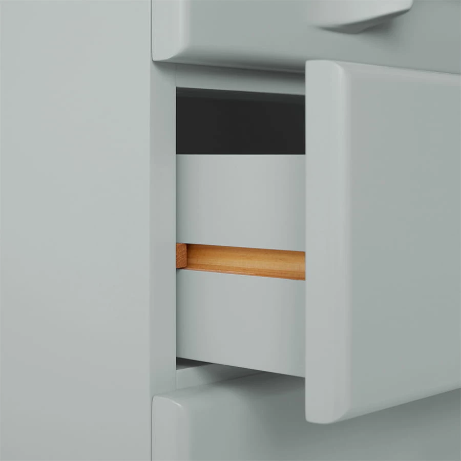 Minimalistyczny design z gładkimi frontami sprawia, że mebel pasuje do różnych stylów wnętrz – od nowoczesnych po klasyczne. Komoda nie tylko ułatwi organizację przestrzeni, ale też stanie się subtelną, dekoracyjną ozdobą Twojego domu.