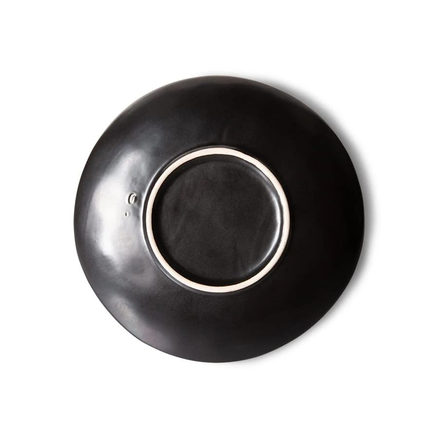 Każdy talerz z tej kolekcji to małe dzieło sztuki – ręcznie zdobiony wzór gwiazd tworzy intrygujący kontrast z głęboką czernią ceramiki. Szkliwiona powierzchnia nie tylko chroni przed zabrudzeniami, ale także podkreśla głębię koloru. Talerze doskonale komponują się z innymi elementami serii 70s HKliving, pozwalając stworzyć spójną aranżację stołu. To propozycja dla tych, którzy cenią designerskie detale i chcą nadać codziennym posiłkom wyjątkowy charakter.