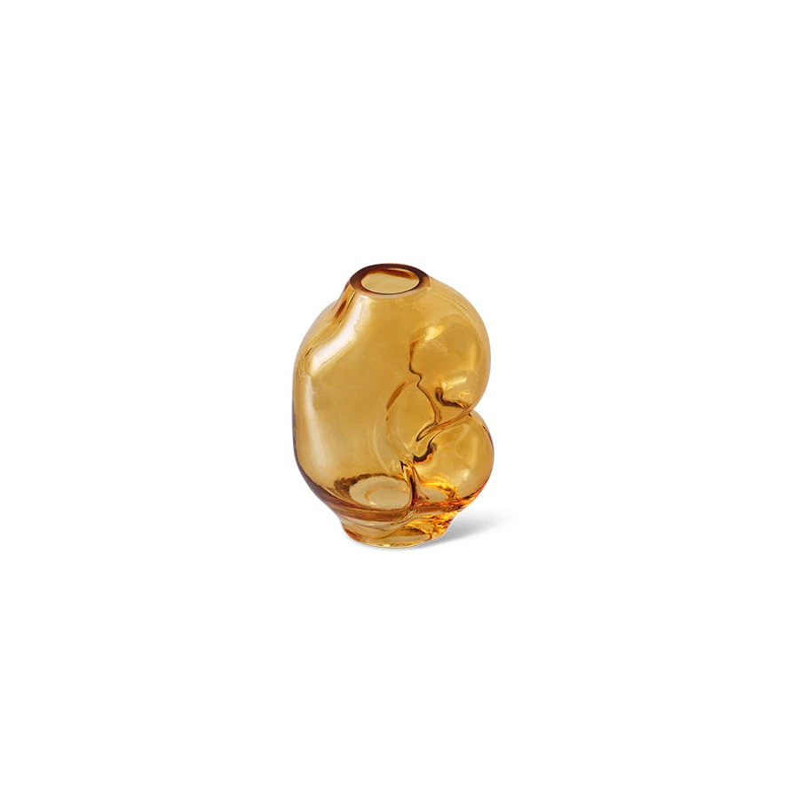 Mały pomarańczowy wazon GLEAM marki hkliving o organicznym kształcie i nowoczesnym wykończeniu. Szkło z teksturalnymi detalami, wymiary 11x13 cm, wysokość 18 cm. Subtelny dodatek kolorystyczny.