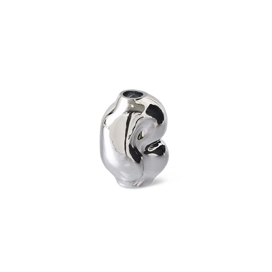Mały wazon GLEAM marki hkliving to elegancki szklany dodatek w srebrnym odcieniu. Jego refleksyjna powierzchnia i organiczny kształt nadają mu unikalny charakter. Wymiary: 11 x 13 cm, wysokość 18 cm, waga 0.74 kg.