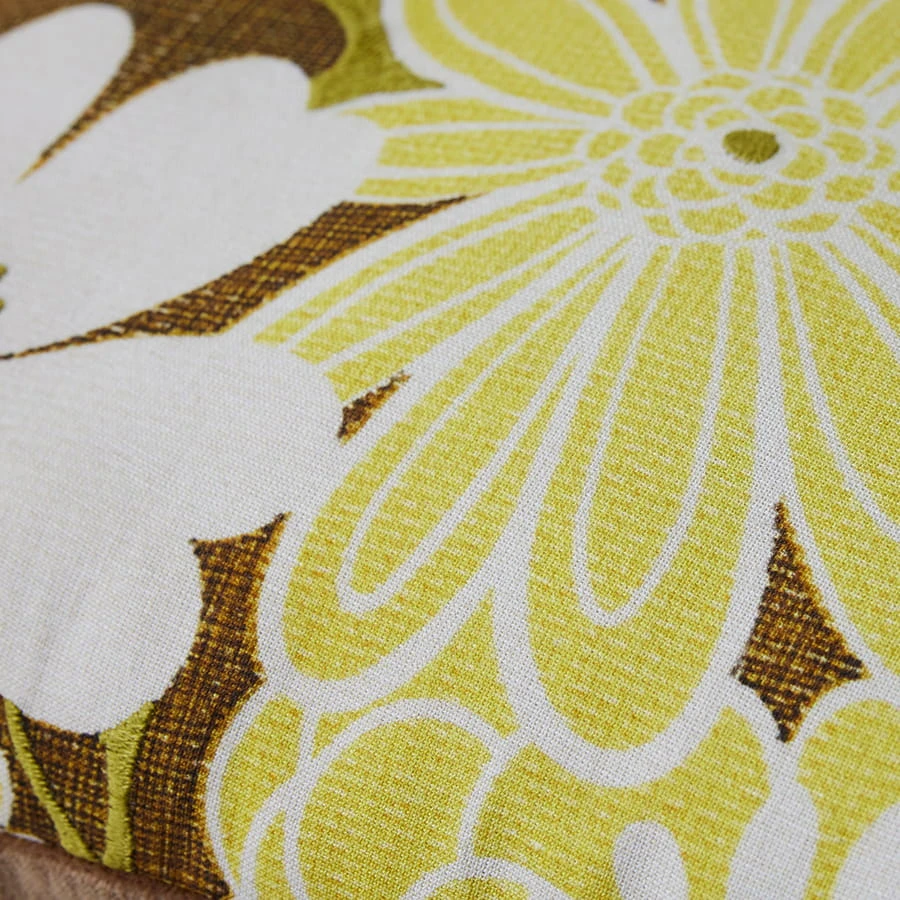 Poduszka dekoracyjna DAISY (40x35 cm) w odcieniach brązu i zieleni, z vintage wzorem kwiatowym. Przód z lnu i bawełny, tył bawełniany, precyzyjne szwy. Elegancka i naturalna.