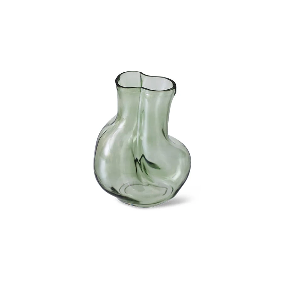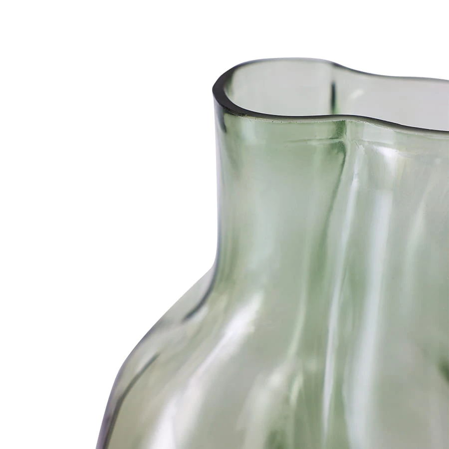 Wazon GLEAM hkliving w organicznym kształcie i oliwkowej zieleni. Płynna forma, nowoczesne wykończenie ze szkła. Wymiary 10,3x17 cm, wysokość 22 cm. Elegancka dekoracja.