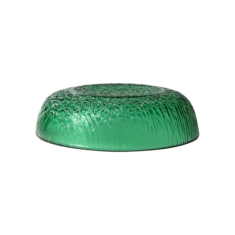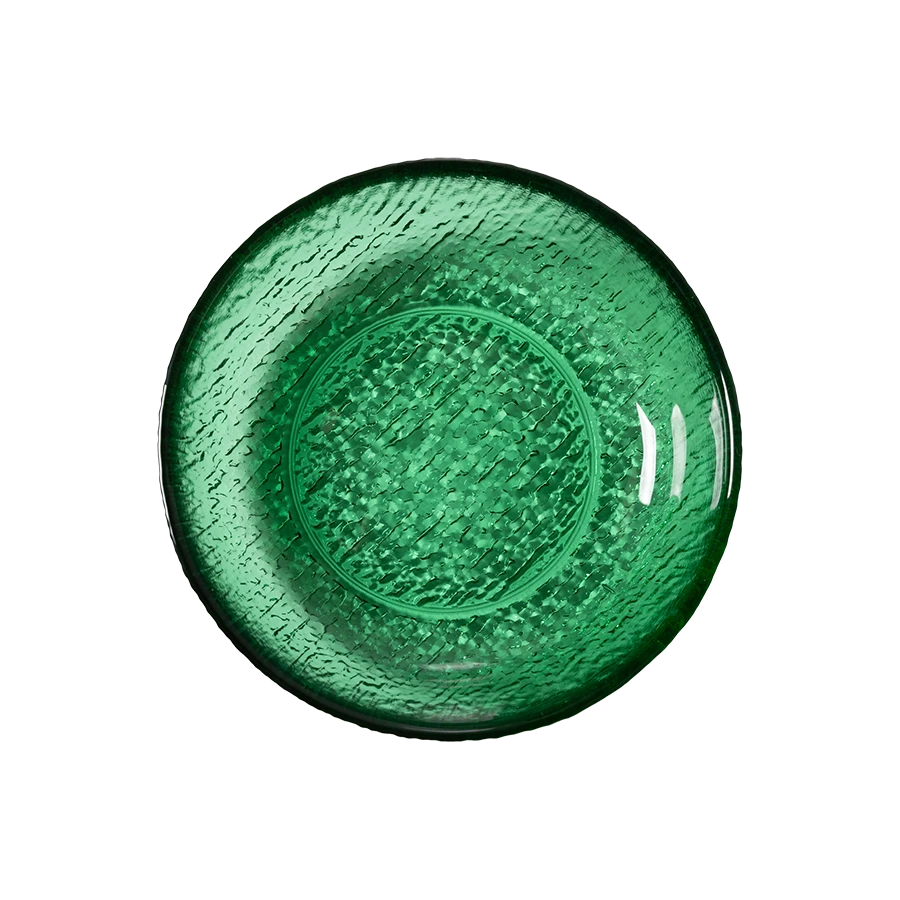 Szklana salaterka deserowa w eleganckim szmaragdowym kolorze. Holenderski design, średnica 12,5 cm, wysokość 3,5 cm. Odporna na zmywarkę, pojedyncza sztuka z kolekcji Emeralds.