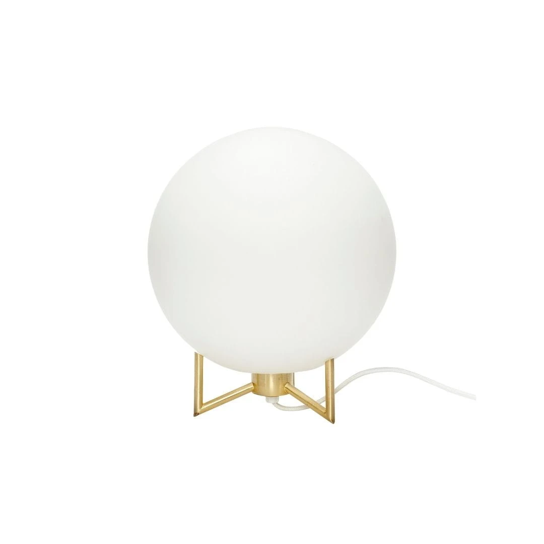 Biała lampa kula na złotych nóżkach Palm E27 od duńskiej marki Hubsch jest magiczna. Kula w sypialni jest jak księżyc na niebie. To jest to światło, które rozświetla ciemność i rozgania nocny strach. Biała lampa kula może stanąć też w salonie czy jadalni - możesz interpretować ją dowolnie. Kula jest szklana, a złote nóżki są metalowe. To jest ten tym dekoracji, na który patrzysz i cieszysz się, że jest. Klosz wydmuchany jest przez hutnika, więc może minimalnie różnić się od zdjęcia.