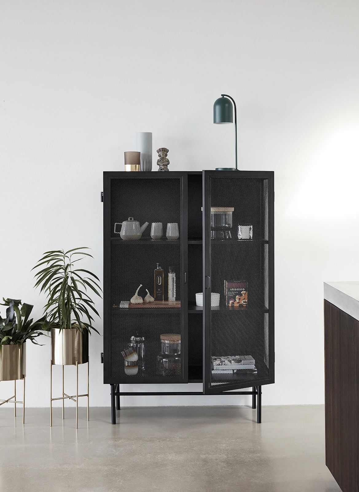 Bardzo precyzyjnie wykonana konsola metalowa od producenta HUBSCH. Posiada metalowe drzwiczki z siatki ażurowej co daje poczucie delikatności .Idealna do salonu lub gabinetu ponieważ możesz w niej przechowywać książki lub rzeczy domowego użytku.Wymiary wysokość 150 cm , szerokość 45, długość 100 cm