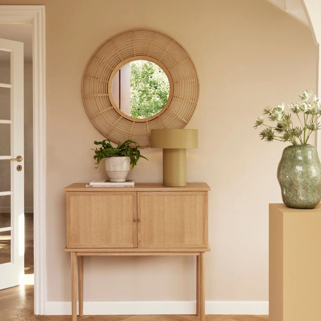 Dębowa konsola na wysokich nogach, z szafką Hubsch to piękna wersja konsoli, idealna do salonu lub sypialni. Może być to praktyczna szafka, bieliźniarka, a nawet barek. Górny blat świetnie sprawuje funkcję stolika, możesz postawić nań kwiaty, posążki, figurki dekoracyjne, zdjęcia. Konsola wykonana jest z drewna dębowego - prawdziwy drewniany mebel. Za drzwiczkami pojemna przestrzeń na tekstylia, dekoracje, dokumenty, książki. Piękny mebel dla tych, którzy szukają stylowych i wyjątkowych produktów.
