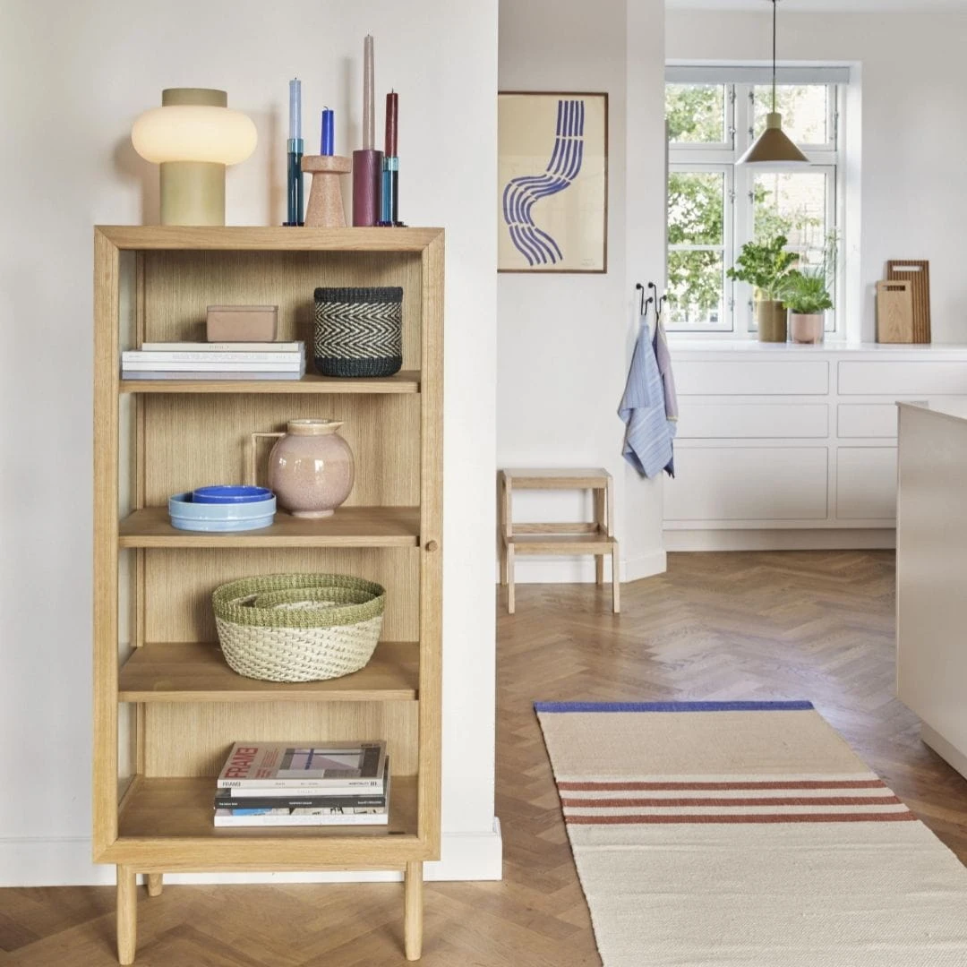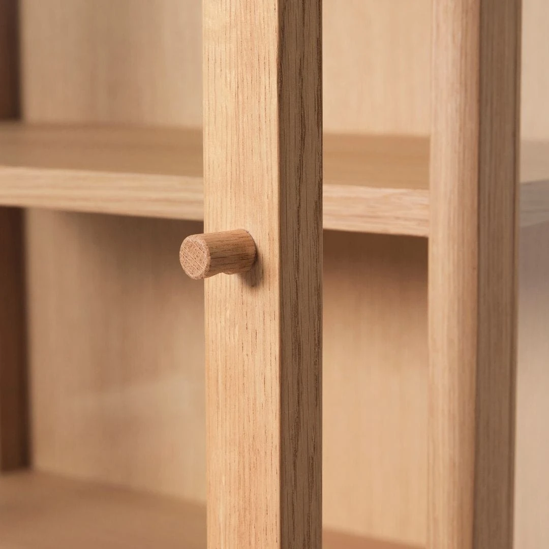 Dębowa witrynka na nóżkach 4 półki Hubsch jest meblem, którego zadaniem jest eksponowanie tego, co masz piękne w swoim domu. Cokolwiek jest dla Ciebie wybitne, rozpiera Cię duma, albo po prostu zachwyca Cię - włóż to do tej gabloty. Książki, dekoracje, puchary, nagrody, a może piękna skandynawska zastawa stołowa, wazony, albo figurki zbierane od lat. Wiele zależy też od pomieszczenia, w którym ją zamierzasz postawić. Na pewno masz już jakieś wyobrażenie. :) Witrynka wykonana jest z drewna dębowego, ze szklanymi przezroczystymi szybami. Z przodu jedne drzwiczki, otwierane poprzez pociągnięcie za gałkę. Witrynka jest bardzo stylowa i lekka wizualnie, poprzez osadzenie jej na nóżkach. Super mebel!