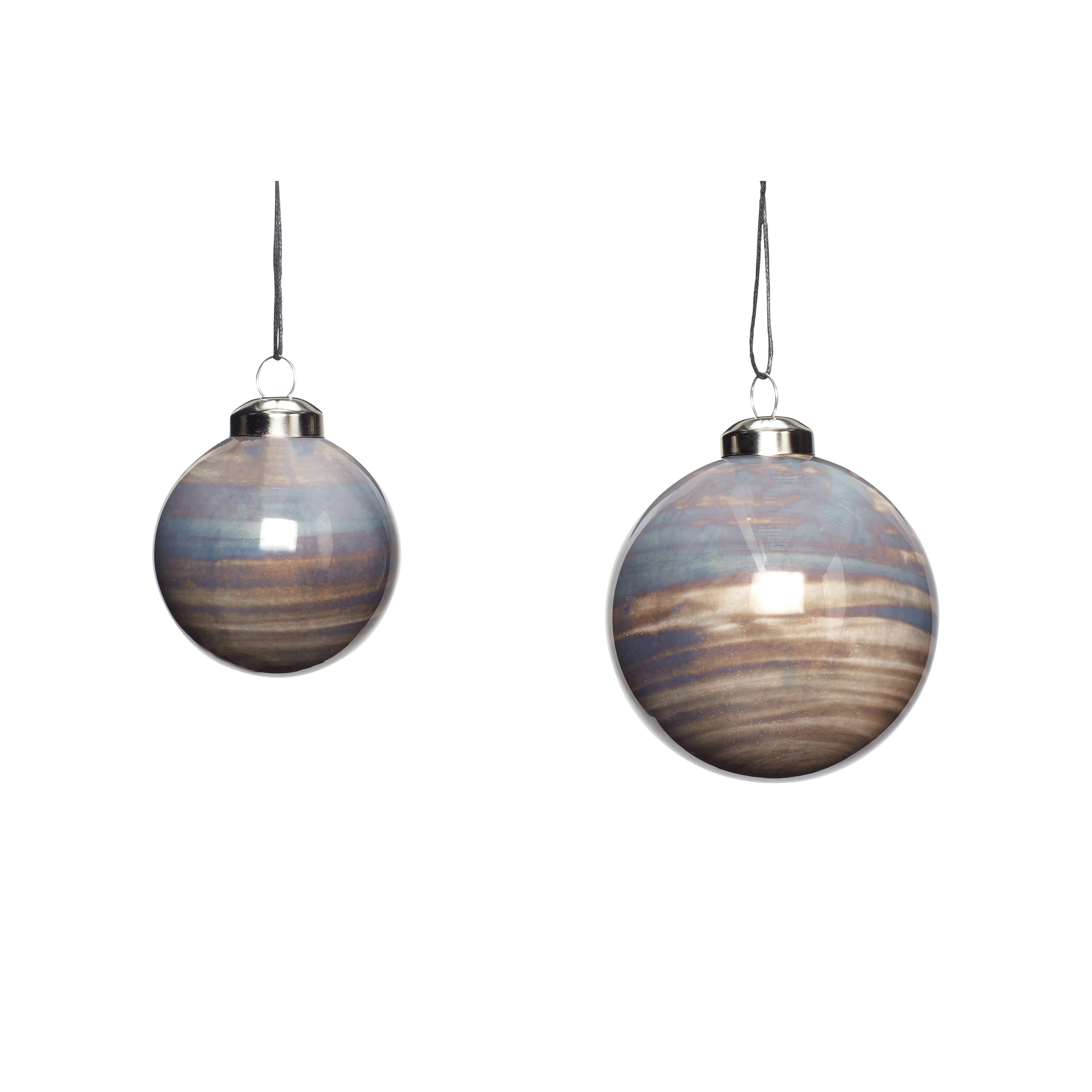 Dekoracja świąteczna w stylu skandynawskim - karmelowa bombka z firmy HUBSCH wykonana ze szkła i metalu zawieszona na czarnej nitce możesz skomponować ją z mniejszą bombką oraz innymi dekoracjami świątecznymi