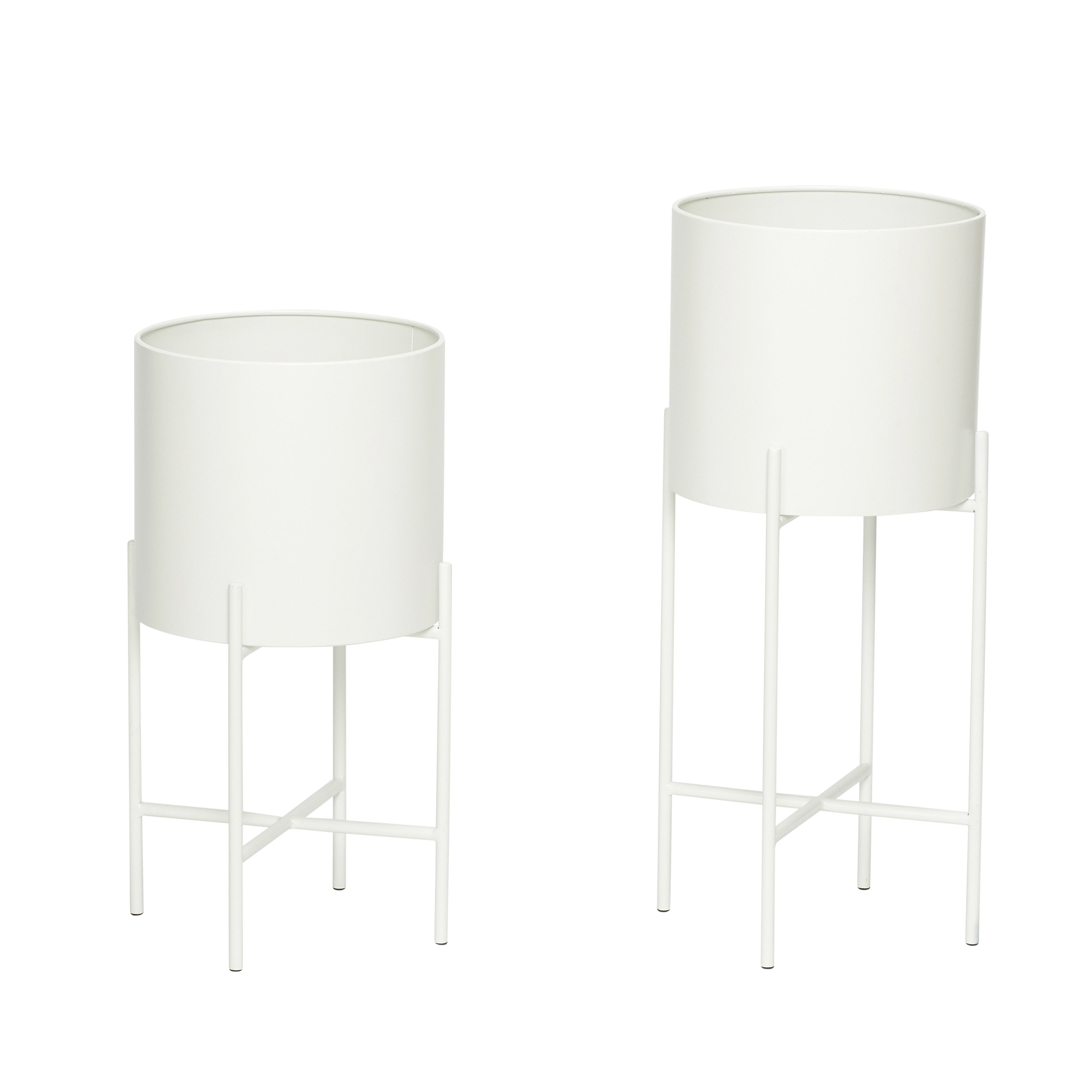 Zestaw dwóch metalowych donic duńskiej marki HUBSCH to nasz ulubiony hit w Casa Carina - donice na wysokich nóżkach to niezwykle interesujące rozwiązanie w aranżacji wnętrz. Możemy idealnie wyeksponować nasze kwiaty, dzięki takiemu podwyższeniu. Efekt wizualny i estetyczny z pewnością zwiększy się i przyciągnie wzrok oraz uwagę naszych gości. Oczy też potrzebują przecież swojej części przyjemności. Donice wykonana z metalu w kolorze białym. Co będzie idealnie kontrastować z żywą zielenią liści. Wymiary: większa średnica 25 cm, wys. 55 cm, mniejsza średnica 25 cm, wysokość 45 cm.
