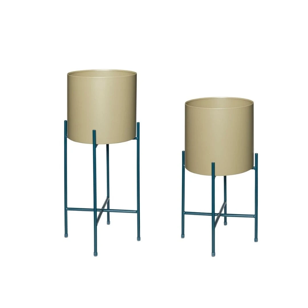 Zestaw donic/osłonek khaki na nóżkach (2 sztuki) od marki Hubsch to najlepsze, co mogła stworzyć marka, by zadowolić naszych roślinomaniaków! Ciekawy i totalnie niebanalny odcień khaki od razu pokazuje prestiż i sprawia, że nawet pospolita roślina wsadzona doń zyskuje wyjątkowy urok. Dwie donice/osłonki to aż dwaj zieloni przyjaciele, którzy zyskają taka piękną odsłonę. Khaki doniczki na nóżkach nie tylko są modne, ale też praktyczne. Łatwo je przestawisz w razie potrzeby, odkurzysz, posprzątasz. Doniczki są metalowe i nie mają dziur na dnie. Producent zaleca potraktować je jako osłonki i wsadzić kwiaty w plastikowych doniczkach. To zestaw dwóch doniczek, z czego jedna jest większa, druga mniejsza. Dobierz roślinki tak, by pasowały i całość stanowiła luksusową ozdobę salonu czy pokoju. A potem przyślij nam zdjęcie i oznacz nas na Instagramie, abyśmy mogli zobaczyć, jak wygląda Twój dom z naszymi khaki doniczkami! Dostępne są także inne kolory z tego zestawu - białe, czarne, złote!