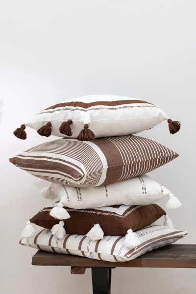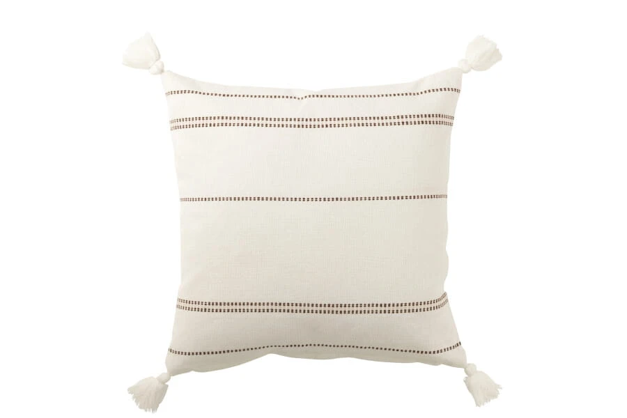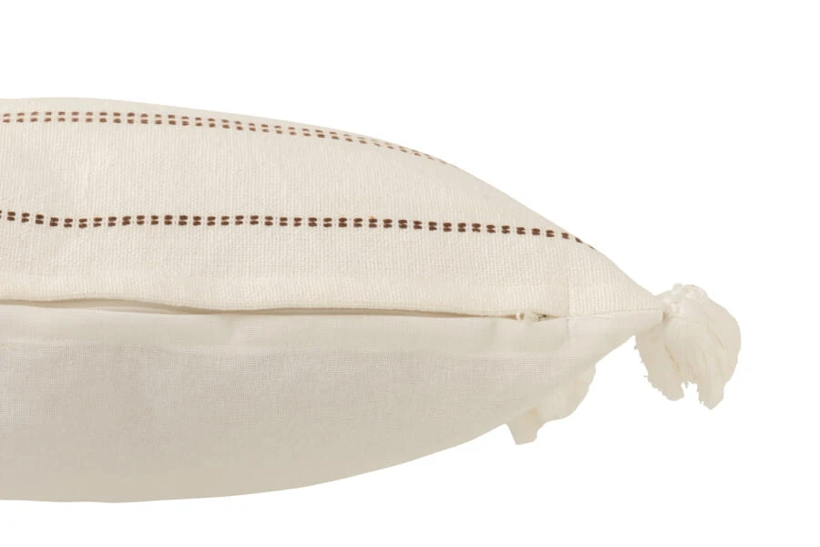 J-line - biała poduszka dekoracyjna w paski z frędzlami 50x50