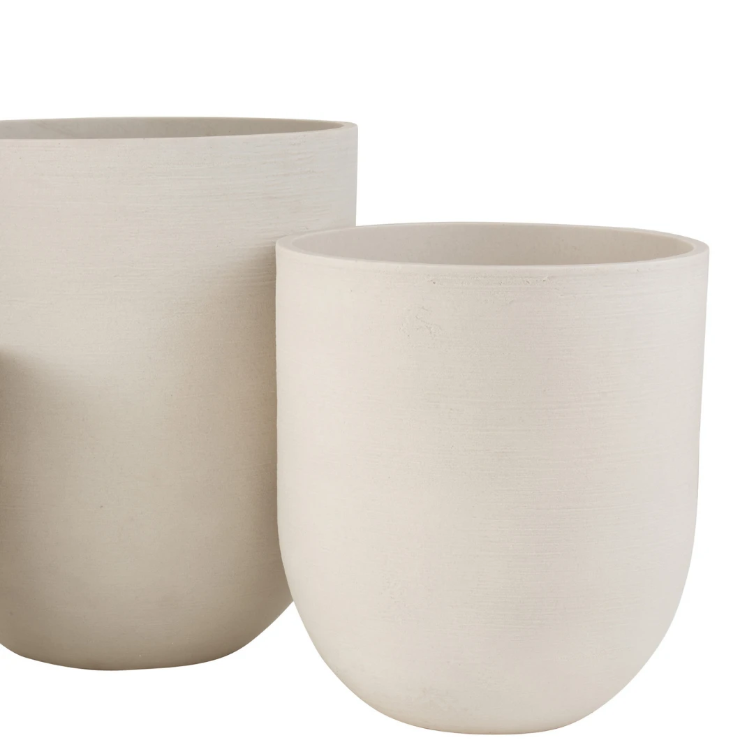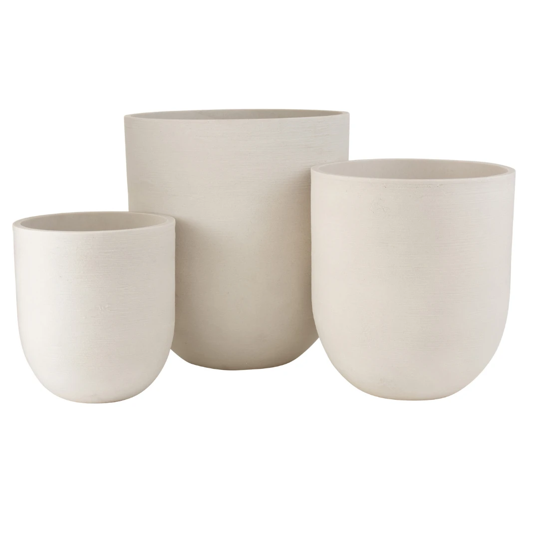Białe, głębokie donice tarasowe to świetny zestaw dla Twoich roślin. Jeżeli planujesz urządzenie tarasu w sposób modny, elegancki i spójny, to będą idealnie pasować. Są głębokie, więc można w nich posadzić rośliny z większym systemem korzeniowym. Surowy i naturalny design pasuje do iglaków i mini drzewek, które teraz są bardzo modne. Są to trzy różne donice, w odmiennych rozmiarach, więc na pewno z łatwością dopasujesz jakieś piękne rośliny. W tej serii dostępne są zestawy także z mniejszymi i płytszymi donicami.