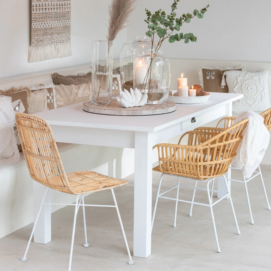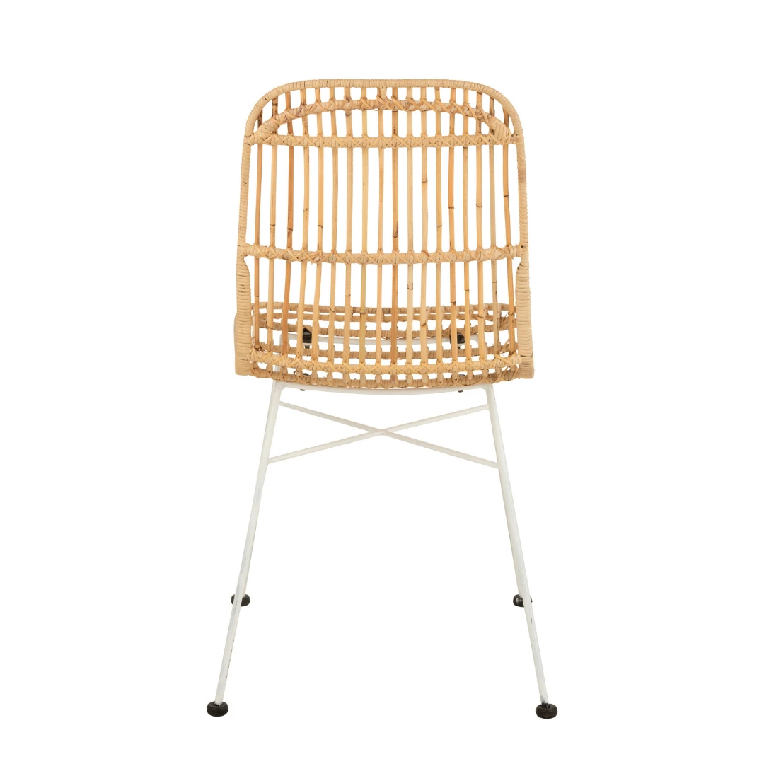 Krzesło rattanowe Ema J-line jest idealne do jadalni lub salonu. Pięknie wygląda przy stole, a do tego jest bardzo wygodne, wiec nawet dłuższe siedzenie jest przyjemne. Krzesło wykonane jest ze starannie wyplecionego rattanu. Metalowe białe nogi wpasowują się w jasne przestrzenie, urządzone np. w stylu skandynawskim czy prowansalskim. Polecamy je też do altany czy na duży zewnętrzny taras (przestrzenie zadaszone!), na którym rodzina spożywa posiłki. Pasuje do naturalnego anturażu, otoczenia zielenią i innymi naturalnymi meblami i dekoracjami, jednak nie jest przeznaczone do całorocznego bycia na zewnątrz. Krzesło Ema możesz kupić solo lub w dowolnej ilości - jeżeli mamy na stanie mniej sztuk niż potrzebujesz, zadzwoń, a my sprawdzimy ich bieżącą dostępność.