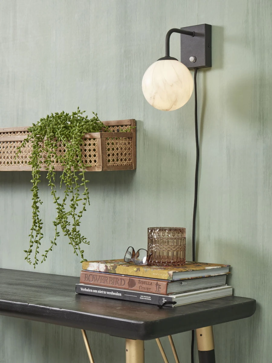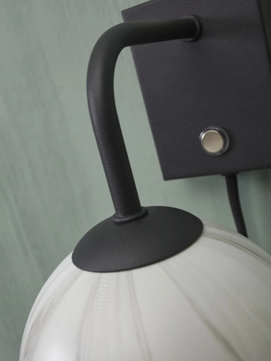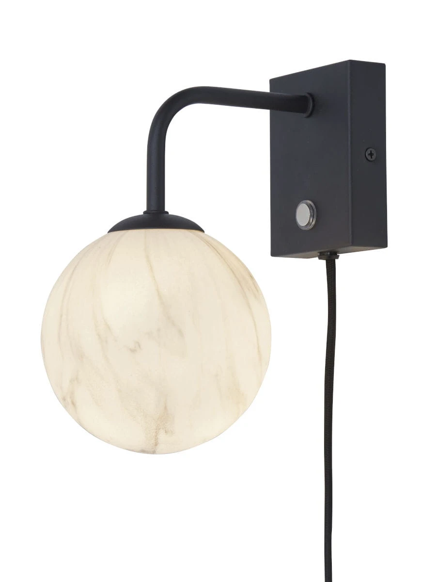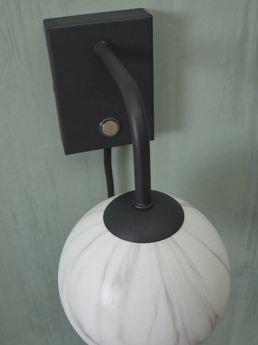 Kinkiet CARRARA to wyjątkowy element dekoracyjny, który doda elegancji każdemu wnętrzu. Wykonany z metalu w kolorze czarnym, z kloszem w mlecznym odcieniu, na którym widoczny jest wzór marmuru. Kinkiet posiada czarny, teksturowany kabel o długości 200 cm, co umożliwia swobodne zamontowanie go na ścianie. Element ścienny ma wymiary 10 x 7,5 x 2,5 cm. Kolorystyka kinkietu to biały, odcienie szarości i czarny. Źródło światła to żarówka G9 o mocy 28W. Waga kinkietu to 0,4 kg. Wymiary opakowania to 34x17x17 cm. Abażur ma średnicę 12 cm, a cała lampa ma wymiary: długość 12 cm, szerokość 18 cm, wysokość 21 cm. Średnica lampy to 12 cm. Kinkiet CARRARA to połączenie klasyki i nowoczesności, które wprowadzi do Twojego wnętrza niepowtarzalny klimat.